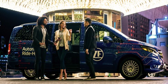 ZF Şehir Trafiğine Yeni Yöntemler Kazandırıyor CES 2019 fuarında gerçekleşen, ZF teknolojisiyle çalışan otonom taksi sistemi robot-taksi sunumu yapıldı.