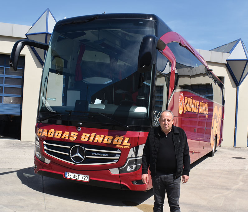 Çağdaş Grup Yönetim Kurulu Başkanı Garip Çağdaş, teslimat sonrasında Taşıma Dünyası’na özel açıklamalarda bulundu. Bu yıl 2’inci Travego otobüsü teslim aldıklarını belirten Garip Çağdaş, “2023 yılında 15 adet Travego yatırımı yaptık. 2024 yılında ise 25 adetlik bir yatırım gerçekleştireceğiz. Öz Has Bingöl, Cesur Bingöl, Çağdaş Kiği Karakoçan ve Çağdaş Bingöl Turizm’in filosunda toplam şu anda 60 otobüs bulunuyor” dedi.