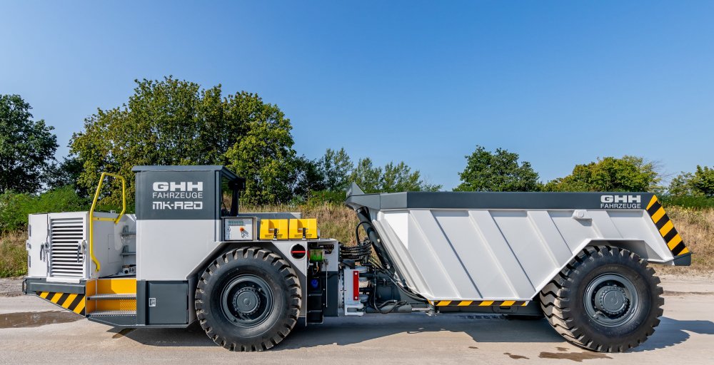 Yer altı madenciliğinin güçlü markalarından GHH, tüm bilgi birikimini aktardığı kamyonlarından MK-A20 ile sert kaya ve tünel açma uygulamalarındaki ihtiyaçları karşılıyor. 9.417 mm’lik uzunluğu, 2.200 mm’lik genişliği ve yüklü haldeyken 2.555 mm’lik yüksekliğiyle kompakt bir yapı sergileyen GHH MK-A20, 10 metreküplük standart damper kapasitesine ek olarak 6 veya 12,5 metreküplük damper kapasitesi seçenekleriyle de sipariş edilebiliyor. Yaklaşık 19 tonluk çalışma ağırlığı ve 20 tonluk yük kapasitesiyle, 39 tonluk toplam yüklü ağırlığa ulaşabilen GHH MK-A20, en zorlu, dar ve alçak yer altı madenlerindeki işlerin üstesinden kolaylıkla gelebiliyor.