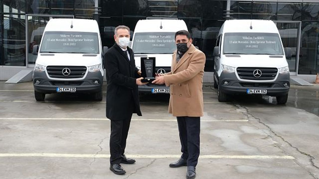 Yıldırım Turizm Yönetim Kurulu Başkanı Esat Yıldırım: “Temellerini bizzat 1996’da attığım Yıldırım Turizm, 1998 yılında Yıldırım Turizm Taş. Ser. Hiz. İnş. Ltd. Şirketi adı altında kurumsallaşmıştır. Şirketimizin 24 yıllık başarılı yolculuğuna katkısı olan öncelikle çalışanlarımıza, tedarikçilerimize ve referanslarıyla müşteri portföyümüzü artıran,uzun yıllardır hizmet verdiğimiz müşterilerimize teşekkürlerimi sunarım. Araç parkımızın yaklaşıkyüzde 80’ini oluşturan hafif ticari araç sınıfında tercihimizi2011 yılından itibaren Mercedes-Benz markasından yana kullanıyoruz. Hem sürücülerimiz hem de yolcularımızın ihtiyaçlarına üst düzeyde cevap verebilen Sprinter’ınyeni nesli ile sürdürülebilir işbirliğimizi 13 adet Sprinter araç alarak devam ettiriyoruz. Konusunda uzmanlaşmış güvenilir kadromuz ve sürekli yenilenen araç filomuzla personel, öğrenci ve diğer tüm ulaşım alanlarında kaliteli hizmet ve müşteri memnuniyeti ilkemizle yolumuza devam ediyoruz. Yeni Mercedes-Benz Sprinter Minibüslerimiziteslim eden tüm Mercedes-Benz ekibine ve Gülsoy Otomotiv’e teşekkür ediyor, araçlarımızın hepimize hayırlı olmasını diliyorum.”