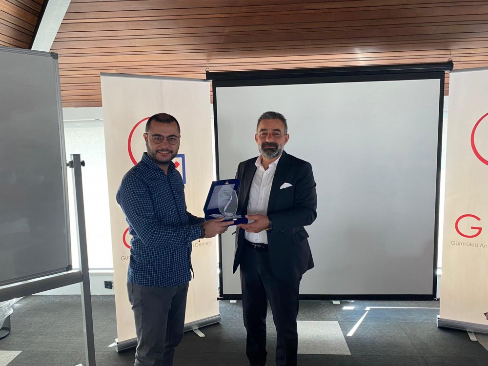 Program sonunda eğitim çalışmalarına katkıda bulunan Sienzi Antrepo Genel Müdür Yardımcısı Olcay İlcek, Obdan Antrepo Gümrük Müşaviri Burak Öztürk ve Oregon Teknoloji Gümrük Müşaviri Ferudun Cemal İnal’a GAİD Başkanı Cavit Değirmenci, GAİD Başkan Yardımcısı Murat Doğan, GAİD Başkan Yardımcısı Gökhan İskender, Sayman Üye Gökhan Ergüner ve Genel Sekreter Selçuk Yılmaz tarafından plaketleri takdim edildi. Ayrıca tüm katılımcılara katılım belgesi verildi.