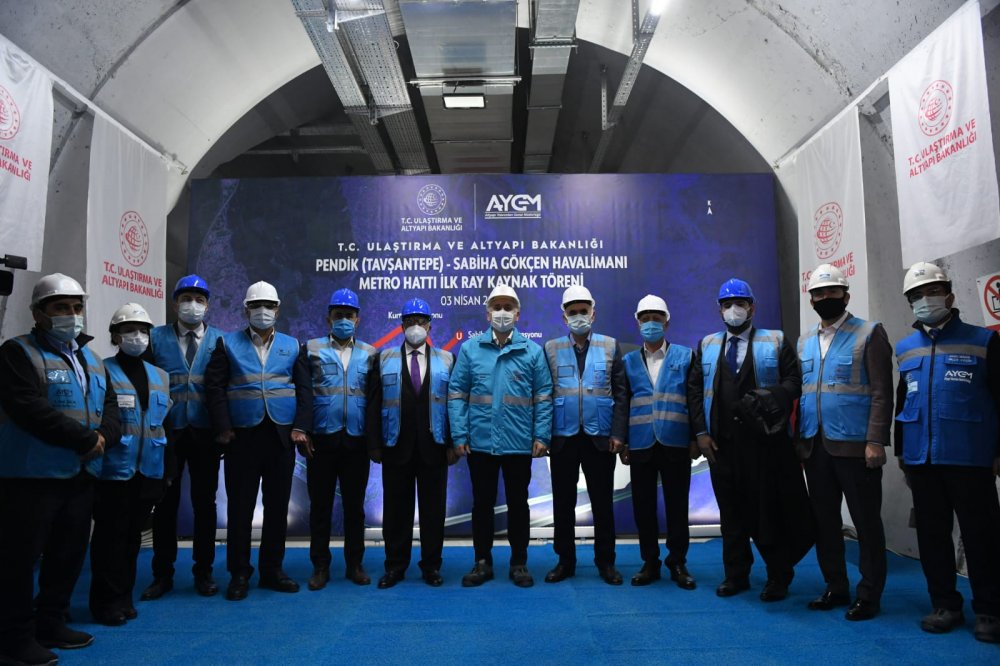 İlk ray kaynağı yapılmakta olan Pendik (Tavşantepe)- Sabiha Gökçen havalimanı Metro Hattında çalışmaların süratle devam ettiğini dile getiren Bakan Karaismailoğlu, şöyle konuştu:“Bu hattımız, İstanbul’un şehirler ve milletlerarası hava ulaşım terminallerinden birisi olan Sabiha Gökçen Havalimanı ile Kadıköy-Kartal-Pendik Metro Hattı arasında raylı sistem bağlantısını kesintisiz sağlayacaktır. 7,4 kilometre uzunlukta olan ve 4 İstasyonu bulunan bu hatta saatte tek yönde 70 bin yolcu rahat, hızlı, güvenli ve ekonomik olarak seyahat edecektir. Bugün itibariyle; hattımızın tünel inşaatındaki kazıları tamamladık. Bugüne kadar hattımızda, 15 bin 970 metre tünel kazısı yaptık. 90 bin metreküpün üzerinde beton döktük. 14.536 m’lik ray montajı işinin yüzde 73’ü yani 10.674 m’sini tamamlandık.”