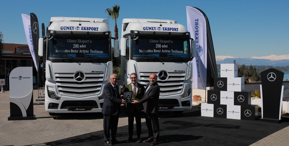Mercedes-Benz Türk Kamyon Pazarlama ve Satış Direktörü Alper Kurt, konu hakkında şunları söyledi: “Lüks, konfor, güvenlik ve teknolojide bir üstünü sunan Actros ailesi; sahip olduğu güvenlik donanımları, konforu ve düşük işletme maliyeti ile yıllardır Türkiye kamyon pazarının en çok tercih edilen modellerinden biri. Mercedes-Benz Türk Aksaray Kamyon Fabrikamızda ürettiğimiz son teknolojiye sahip Actros model araçlarımızın Güney Eksport’un filosuna katılmasından ötürü gurur duyuyoruz. Güney Eksport ile sahip olduğumuz değerli iş ortaklığımızıngelecekte de devam edeceğine inanıyorum. Bu başarılı iş birliğinin gerçekleşmesinde mesai harcayan herkese ayrı ayrı teşekkür ediyorum.”