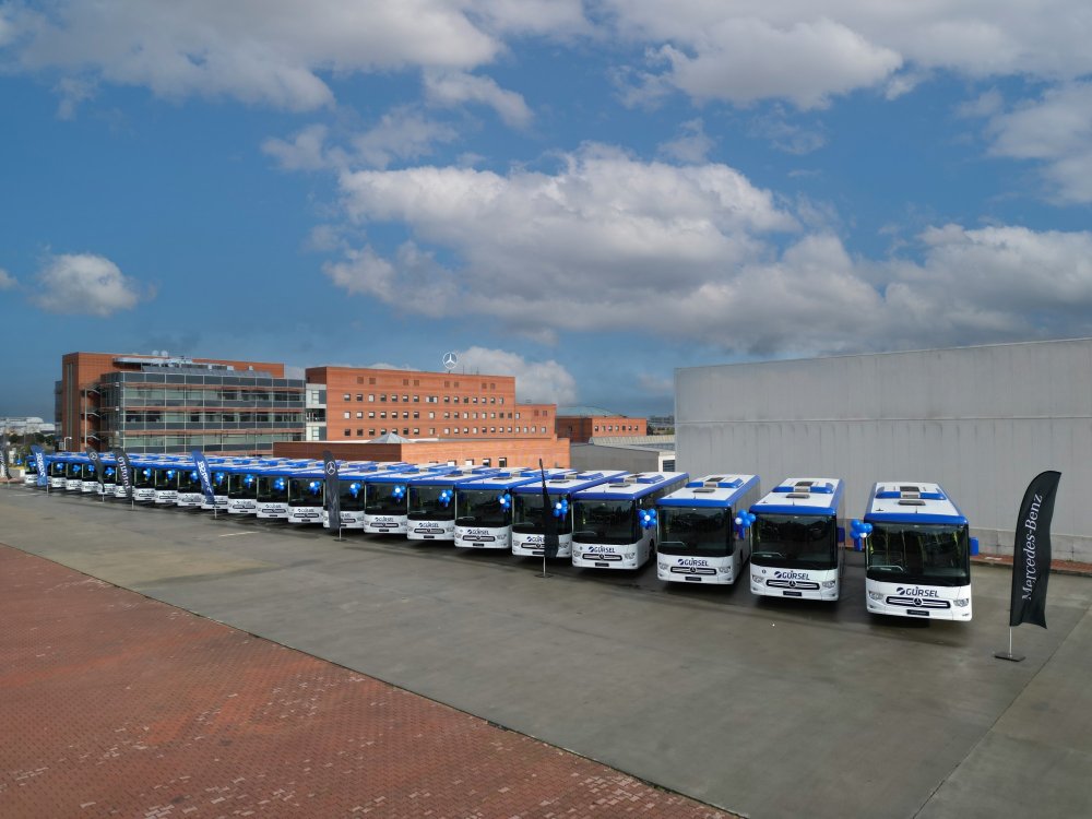Personel ve öğrenci taşımacılığı alanında ulaşım çözümleri sunan Gür-Sel Turizm, 25 adet Mercedes-Benz Intouro’yu filosuna ekleyerek sektördeki konumunu daha da güçlendirdi. Mercedes-Benz Türk ve Gürsel Turizm’in ortak çalışmaları ile geliştirilen araçlar, şehir içi kısa mesafe taşımacılığı alanında kullanılacak. Bu yıl Mercedes-Benz Türk'ten 45 araç siparişi veren Gür-Sel Turizm, 2022 yılında söz konusu siparişin ilk 25 aracını teslim aldı 2023’te ise kalan 20 otobüsün 10 adedi Gür-Sel Turizm, 10 adedi ise Efe Tur’un araç parkına eklenecek.