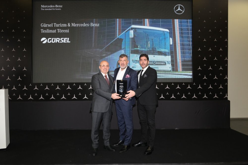 Mercedes-Benz Kamyon Finansman’ın kredi desteğiyle Mercedes-Benz Türk bayisi Gelecek Otomotiv tarafından satış işlemleri yapılan araçlardan 25 adedi, 20 Aralık 2022 tarihinde düzenlenen törenle teslim edildi. Mercedes-Benz Türk Otobüs Teslimat Holü’nde gerçekleştirilen törende; Gür-Sel Turizm Yönetim Kurulu Başkanı Levent Birant, Gür-Sel Turizm Yönetim Kurulu Başkan Yardımcısı Hürer Fethi Gündüz, Gür-Sel Turizm Yönetim Kurulu Üyesi Bülent Birant, Gür-Sel Turizm Genel Müdürü Kerem Birant ve Gür-Sel Turizm Genel Müdür Yardımcısı Alper Birant, araçlarını Mercedes-Benz Türk Otobüs Satış ve Pazarlama Direktörü Osman Nuri Aksoy, Mercedes-Benz Türk Otobüs Filo Satış Grup Müdürü Burak Batumlu, Gelecek Otomotiv Genel Müdürü ve Yönetim Kurulu Üyesi Ebubekir Koman ve Gelecek Otomotiv Erzurum Otobüs Satış Müdürü Cüneyt Ergün'den teslim aldı.