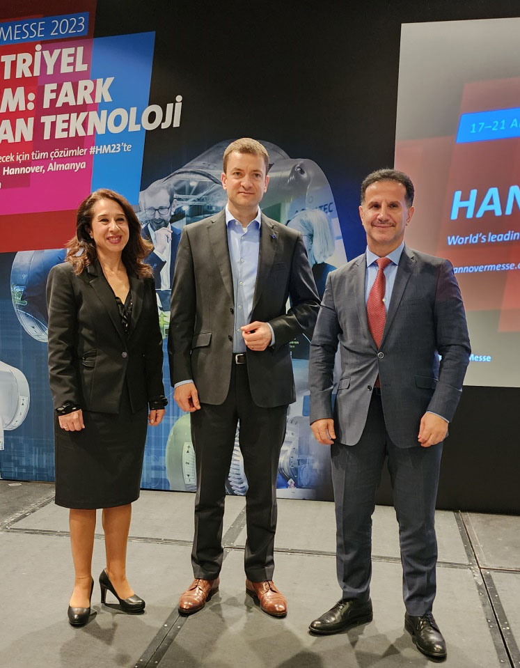 Hannover Fairs Turkey Fuarcılık A.Ş. Genel Müdür Yardımcısı Belkıs Ertaşkın, HANNOVER MESSE Ticaret Fuarı ve Ürün Yönetimi Global Direktörü Hubertus von Monschaw, İstanbul Ticaret Odası (İTO) Yönetim Kurulu Üyesi Salih Sami Atılgan