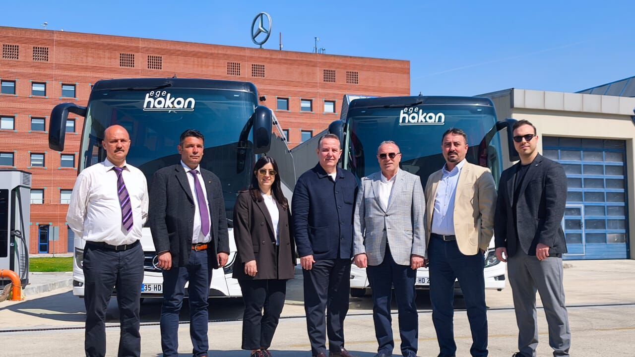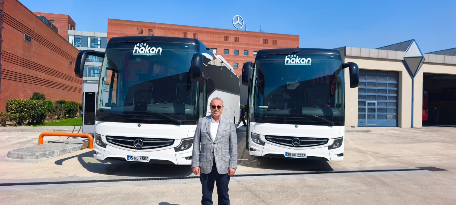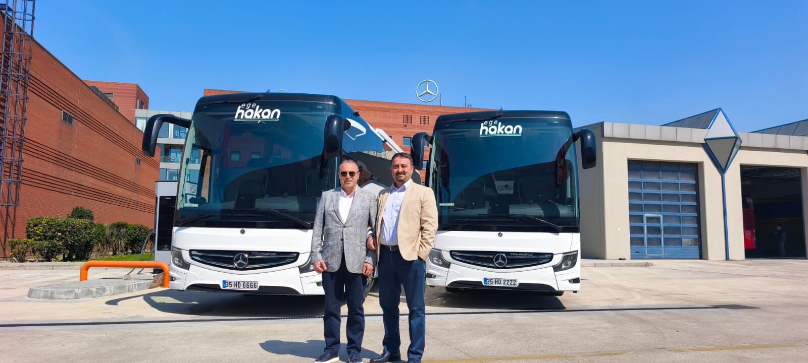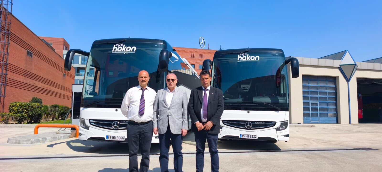 2 adet Tourismo 15 RHD’nin teslimatı Mercedes-Benz Türk Hoşdere Pazarlama Merkezi’nde düzenlenen törenle Mercedes-Benz Türk Otobüs Satış Operasyonları Grup Müdürü Burak Batumlu, Filo Satış Koordinatörleri Selen Uludoğan, Atakan Taşcıoğlu ve Has Otomotiv Satış Müdürü Soner Balaban tarafından Ege Hakan Turizm firma sahibi Mehmet Hakan Özkaralı’ya teslim edildi. Törende firma kaptanları Tarık Malkoç ve Oğuz Kalyoncu’da hazır bulundu.
