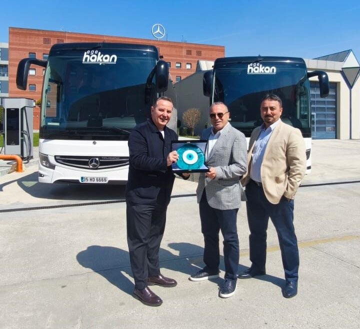 Teslimat töreninde Mercedes-Benz Türk Filo Satış Kısım Müdürü Burak Batumlu tarafından Ege Hakan Turizm firma sahibi Mehmet Hakan Özkaralı’ya plaket sunuldu.