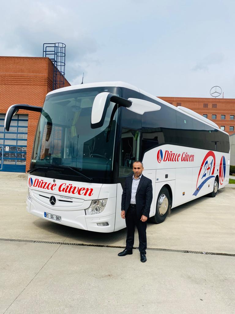 Mercedes-Benz Türk Hoşdere Pazarlama Merkezi’nde düzenlenen törenle 1 adet Tourismo 15 RHD Düzce Güven Turizm Yönetim Kurulu Başkan Yardımcısı Osman Çalık ve babası Saffet Çalık’a teslim edildi. Aracın satışını Hasmer Otomotiv gerçekleştirdi. Düzce Güven Turizm Başkan Yardımcısı Osman Çalık yeni yatırım ve sektörün mevcut durumu ile Taşıma Dünyası’na özel açıklamalarda bulundu.