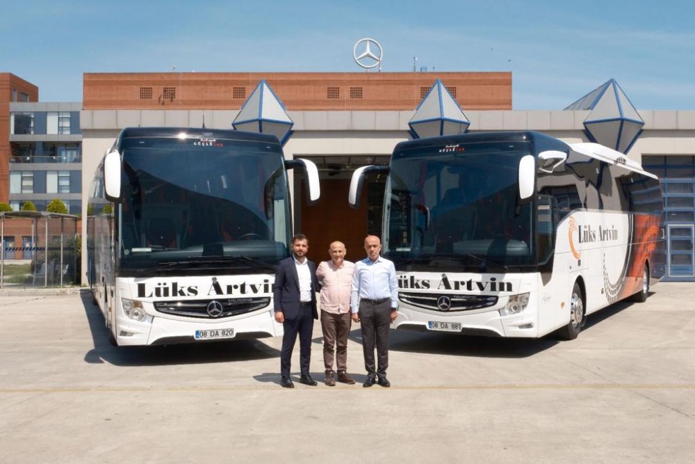 Yeni otobüs yatırımıyla yaz sezonunu giriş yapan firmalar arasına Lüks Artvin Seyahat’te katıldı. 26 yıldır şehirlerarası yolcu taşımacılığı alanında 3 kardeş, Davut, Orhan ve Arslan Aydemir yönetiminde faaliyet gösteren Lüks Artvin Seyahat, filosuna 2 adet Mercedes-Benz Tourismo kattı. Araçların teslimatını Hasmer Otomotiv Otobüs Satış Müdürü Yaşar Şahin Lüks Artvin Seyahat Yönetim Kurulu Üyesi Arslan Aydemir ve oğlu Sergen Aydemir’e yaptı. Teslimatta Mencedes-Benz Kamyon Finansman A.Ş’den Berkay Balkuv, BusStore Alım Satım Yönetmeni Ekrem Ceylanoğlu’da hazır bulundu.