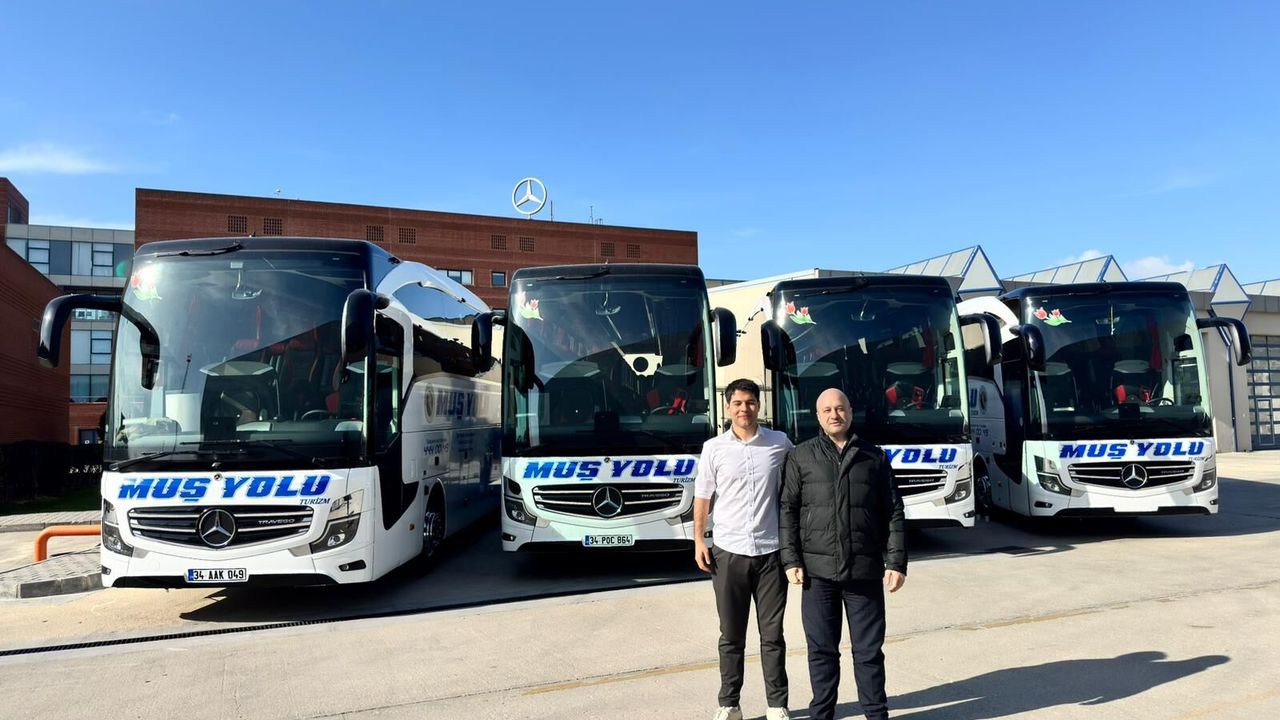 Muş Yolu Turizm bayram önçesinde filosunu Mercedes-Benz Travego otobüslerle güçlendirdi. 17 Mart 2026 tarihinde Mercedes-Benz Türk Pazarlama Merkezi’nde düzenlenen törenle Hassoy Otomotiv Otobüs Satış Müdürü Cenk Soydan Muş Yolu Turizm firma yetkilisi Enes Çifçi’ye 20226 yatırım planında olan 10 adet Travego’nun ilk partisi olan 4 adet Travego otobüsü teslim etti.