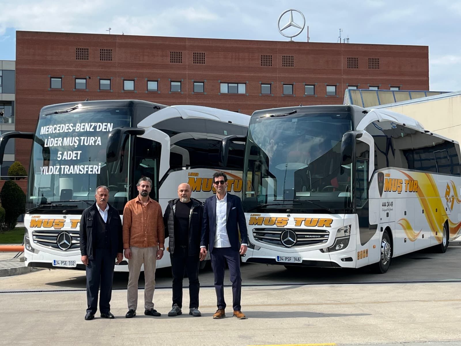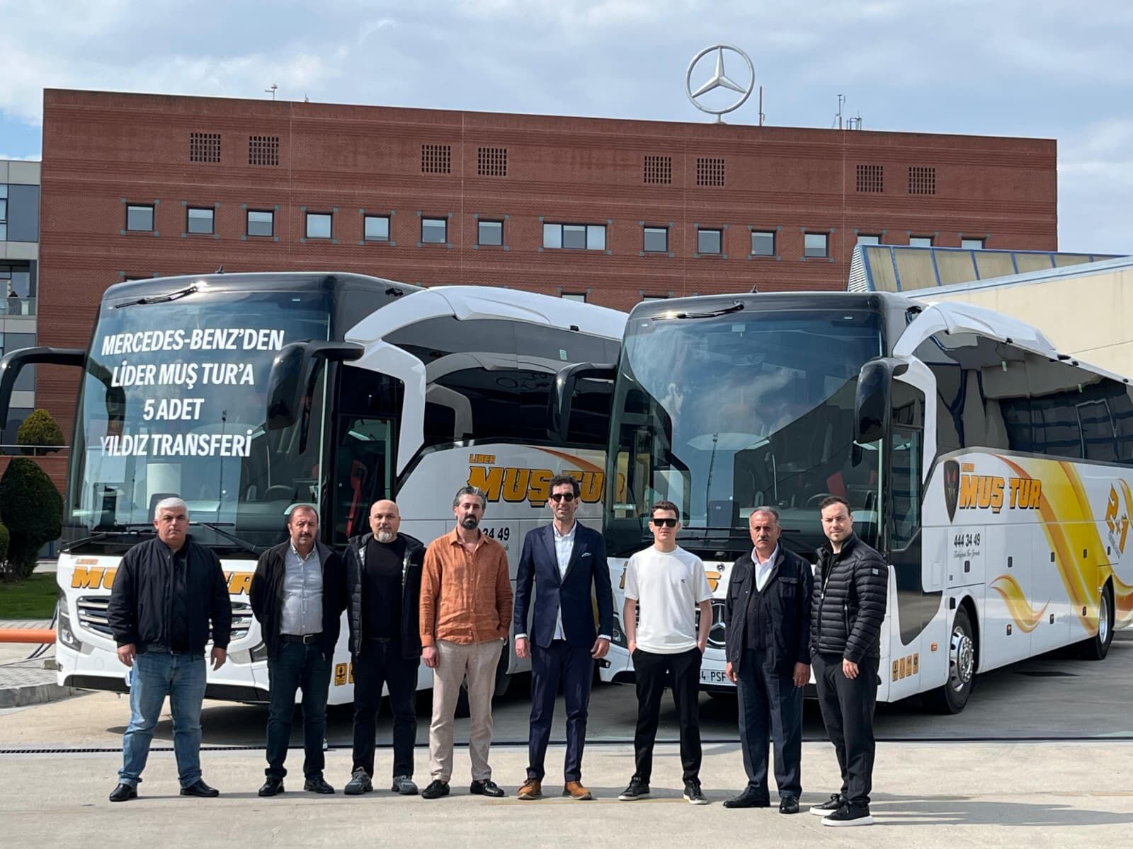 Mercedes-Beanz Türk Hoşdere Pazarlama Merkezi’nde gerçekleşen teslimat ile araçlar Hastalya Otomotiv Satış Müdürü Deniz Gürer tarafından Lider Muş Turizm Yönetim Kurulu Başkanı Serkan Sayan' a teslim edildi. Teslimata Mercedes-Benz Türk Otobüs Satış Koordinatörü Taylan Özyiğit, Otobüs Filo Satış Koordinatörü Atakan Taşcıoğlu’da katıldı.