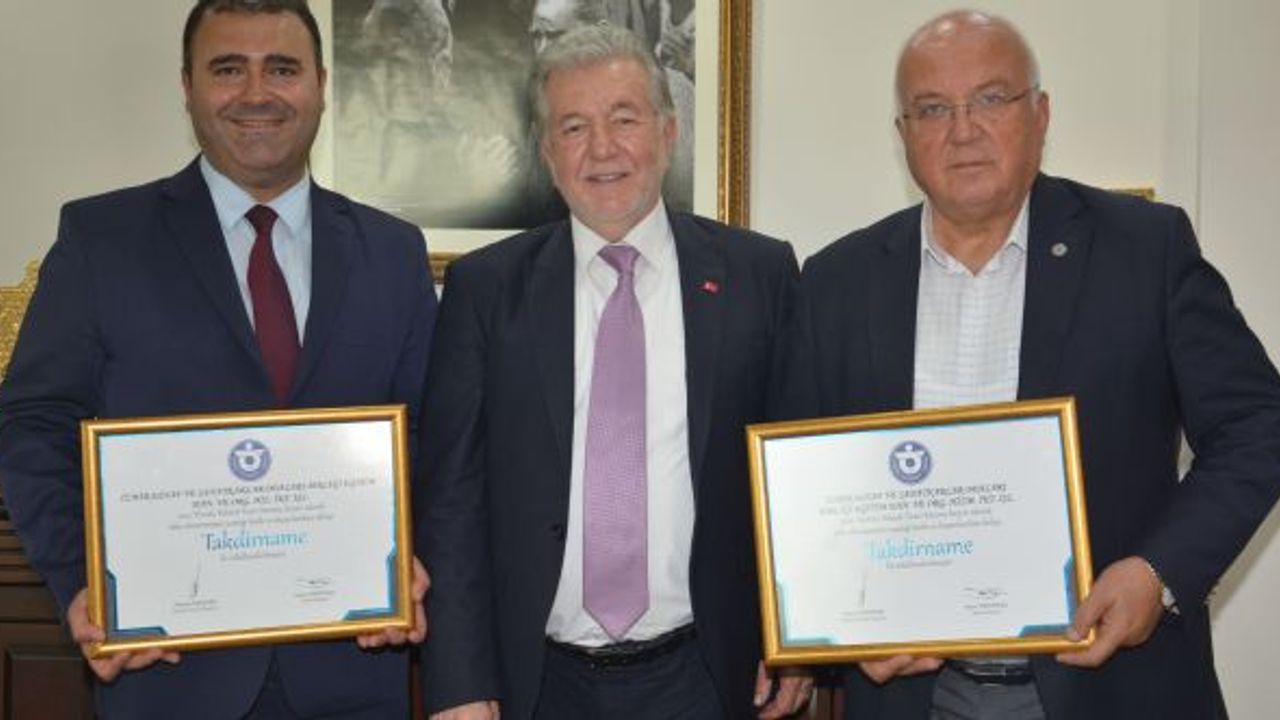 (Soldan Sağa) İESOB Genel Koordinatörü Alpay Kılıçkaya, İESOB Başkanı Yalçın Ata, İESOB Başkanvekili Necdet Heppekcan