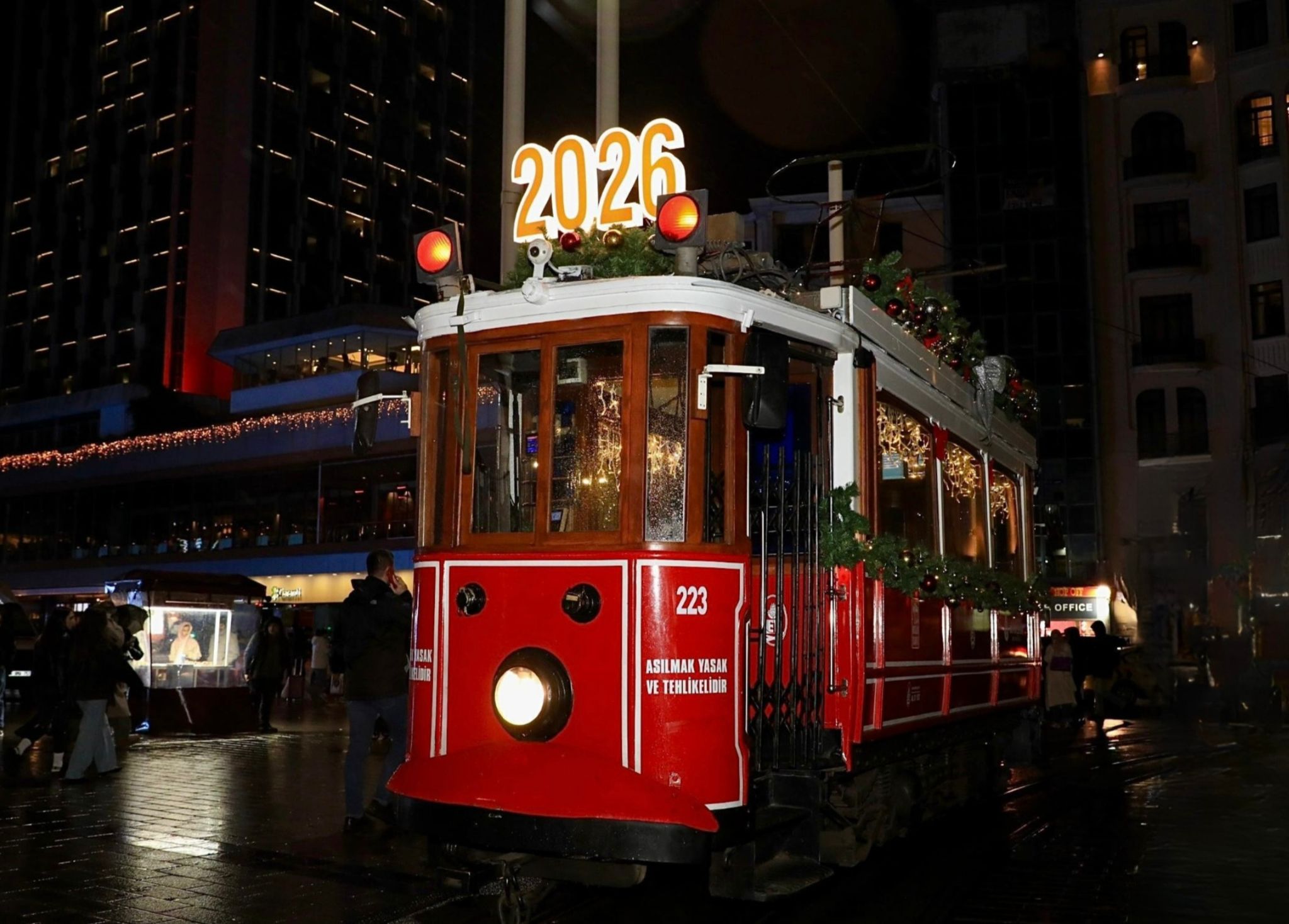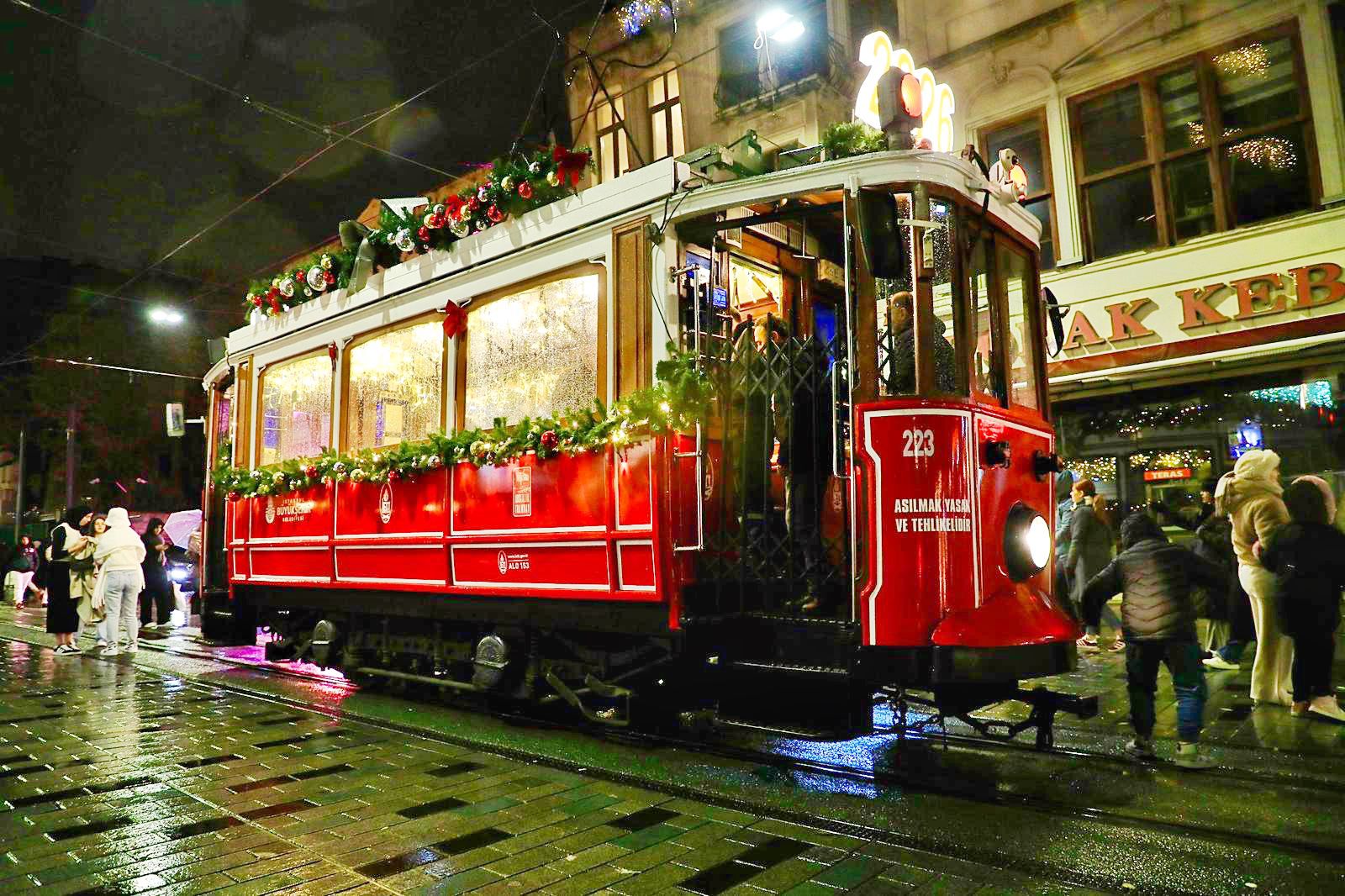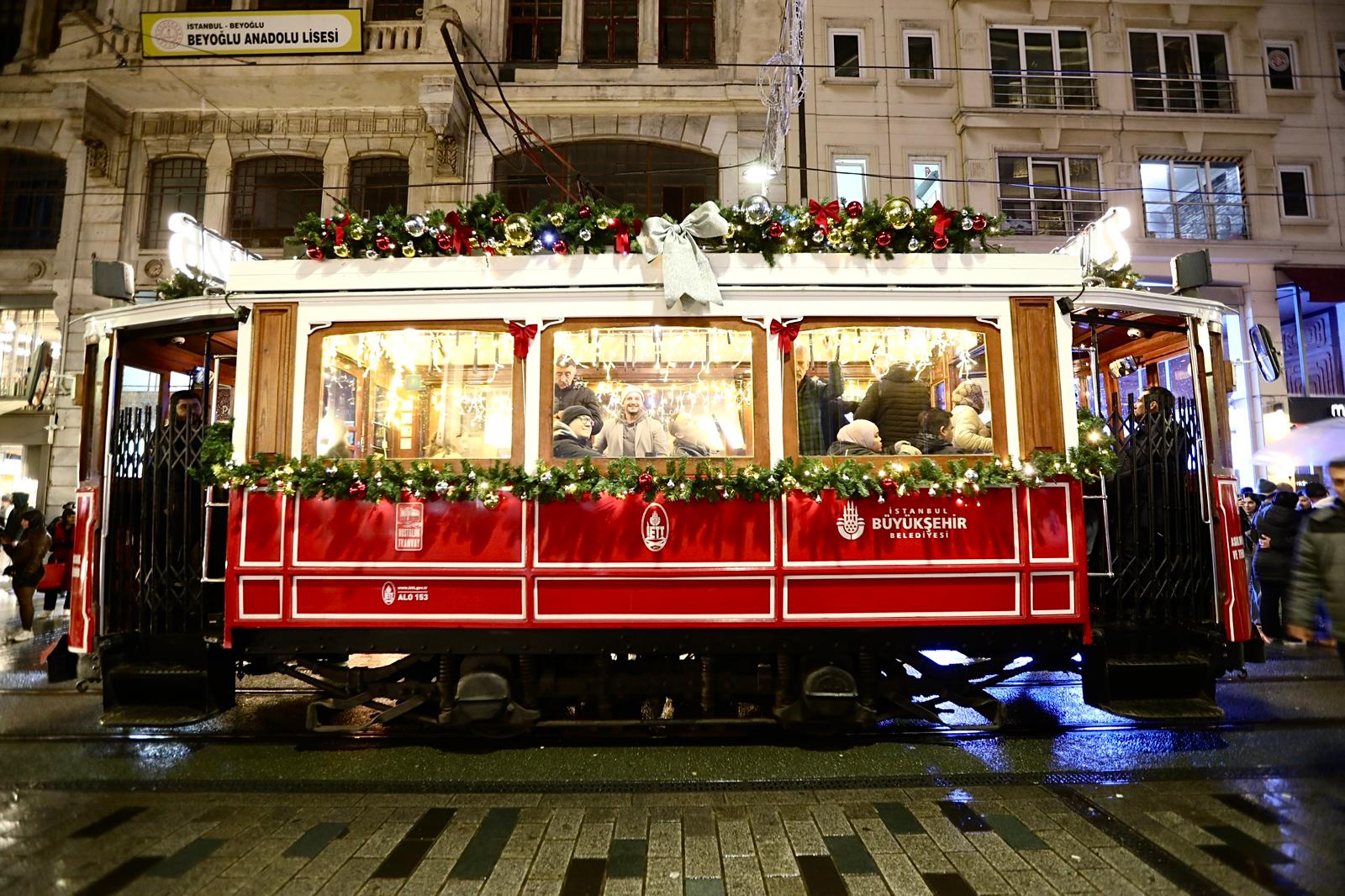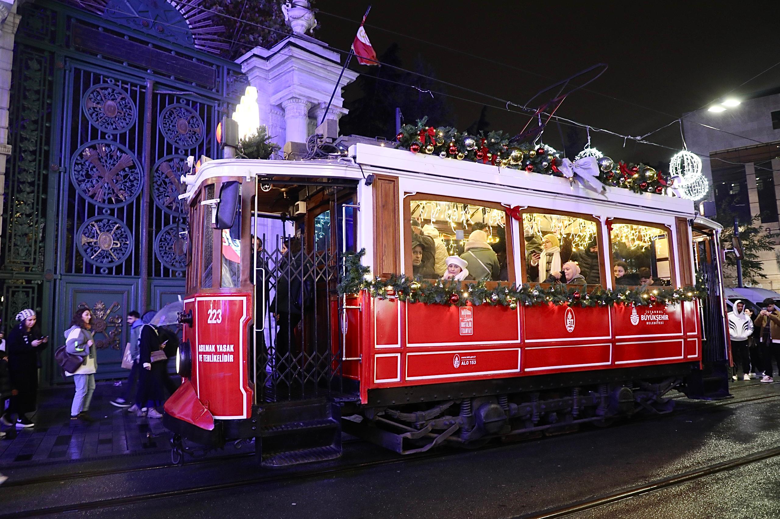 Bu kapsamda, 2025 yılında İETT’nin uzman ekipleri tarafından aslına birebir uygun şekilde restore edilen 1928 üretimi 223 numaralı nostaljik tramvay, yeni yıl için özel tasarımla süslendi. Tramvay, hem tarihi dokusunu koruyor hem de yılbaşı ruhunu İstiklal Caddesi’ne yansıtıyor.