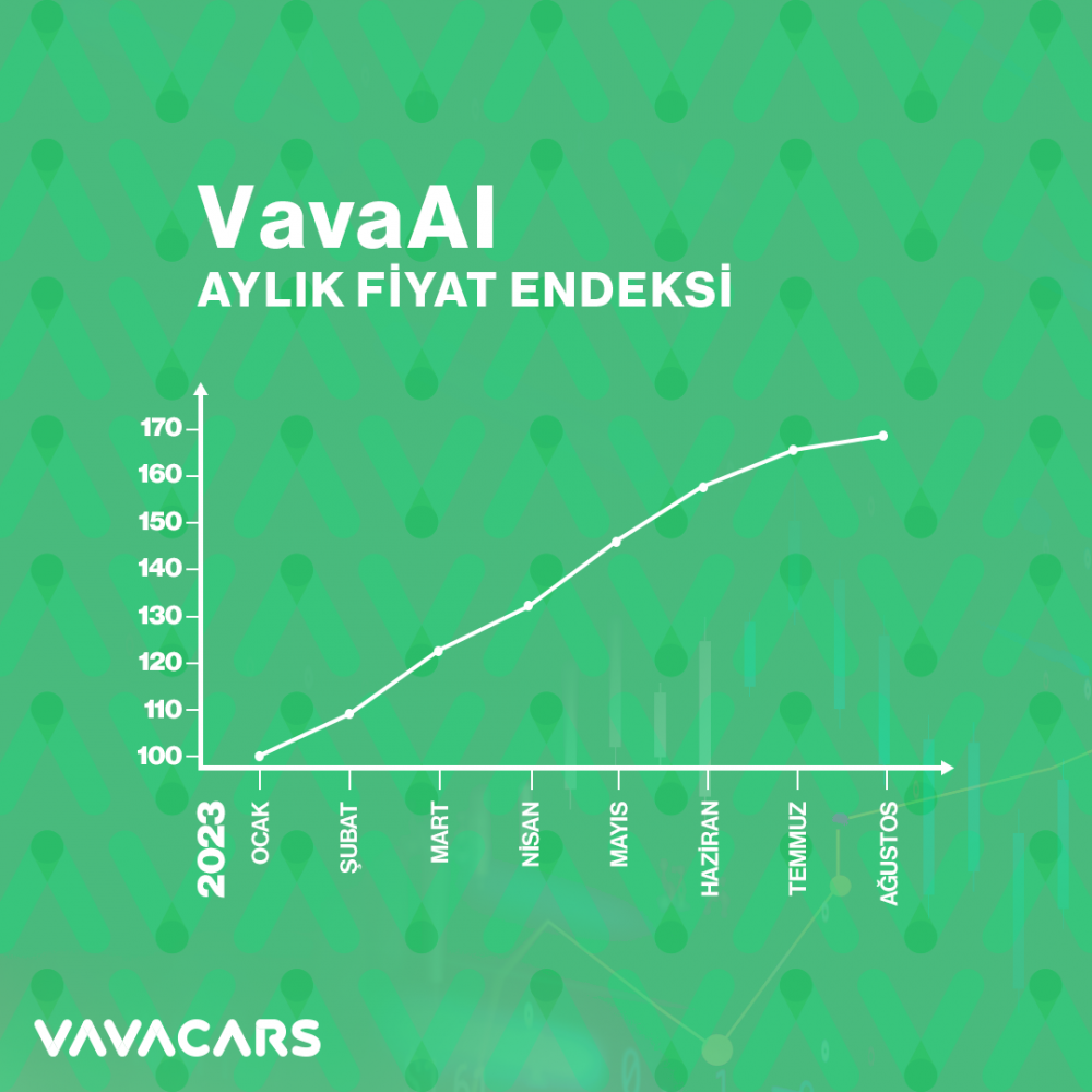 VavaCars yeni ürünü VavaAI ile ağustos ayı ikinci el araç fiyat endeksini açıkladı. Türkiye’de ikinci el araç fiyatları son iki yıldır aralıksız olarak yükselişini sürdürüyor. Sürekli artan fiyatlara karşı toplumu doğru bilgilendirmeyi amaçlayan Türkiye’nin lider ikinci el araç platformu VavaCars da fiyatlara ilişkin öngörüler sağlamak adına her ay yayımlamayı planladığı ‘VavaAI Fiyat Endeksi’ni geliştirdi.