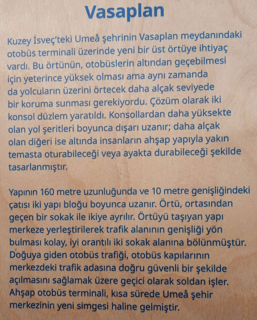Biz elimizdeki tarihi değeri de olan yapıyı koruyamazken, İsveç, sürdürülebilir kalkınma planları çerçevesinde ahşabı daha yoğun kullanmayı başarmış. İstanbul’da 30 Kasım’a kadar açık kalacak sergi daha sonra Ankara ve Hatay’a gidecek. Sergide yer alan yapılar ve bilgiler de gösteriyor ki, dönüştürülebilen bir ürün olan ahşabın karbon ayak izin beton ve çelikten çok daha küçük. Çeliği elde edebilmek için madeni (çıkarmayı ele alırsak zaten başla başına sorun, işlenmesi de çevre kirliliğinin ana kaynaklarından) rafineride işleyeceksiniz, ama ağacın (elli yılda bile büyüse) böyle bir sorun oluşturması söz konusu bile değil.
