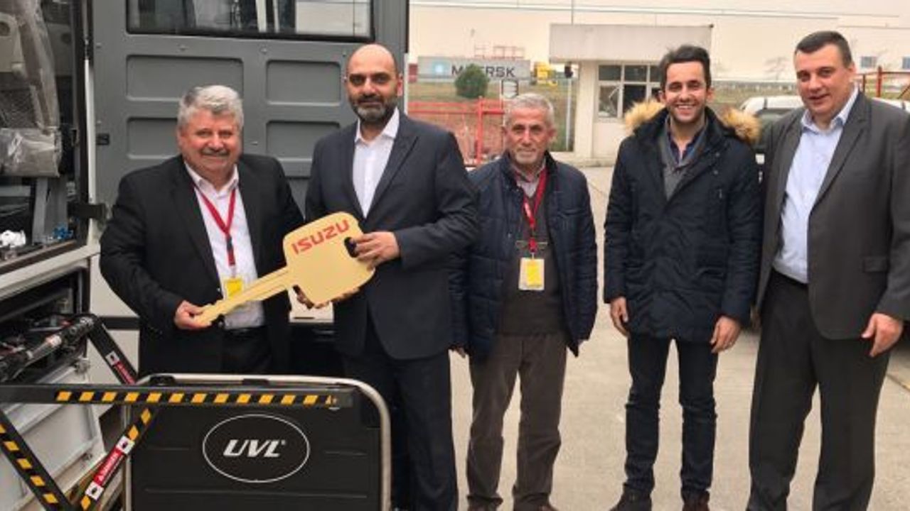 Anadolu Isuzu Satış Direktörü Tunç Karabulut Halil Ünsal'a ilk liftli Turkuaz'ı teslim etti.