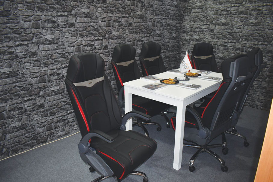 İnova Otomotiv Yönetim Kurulu Başkanı Zülker Kavalcı, aynı zamanda bir sürpriz yeniliği de paylaştı: “Ofis koltuğu üretimine de başladık. İlk ürünleri burada tanıtıyoruz. Koltuklar çok şık ve çok güzel oldu.” ■