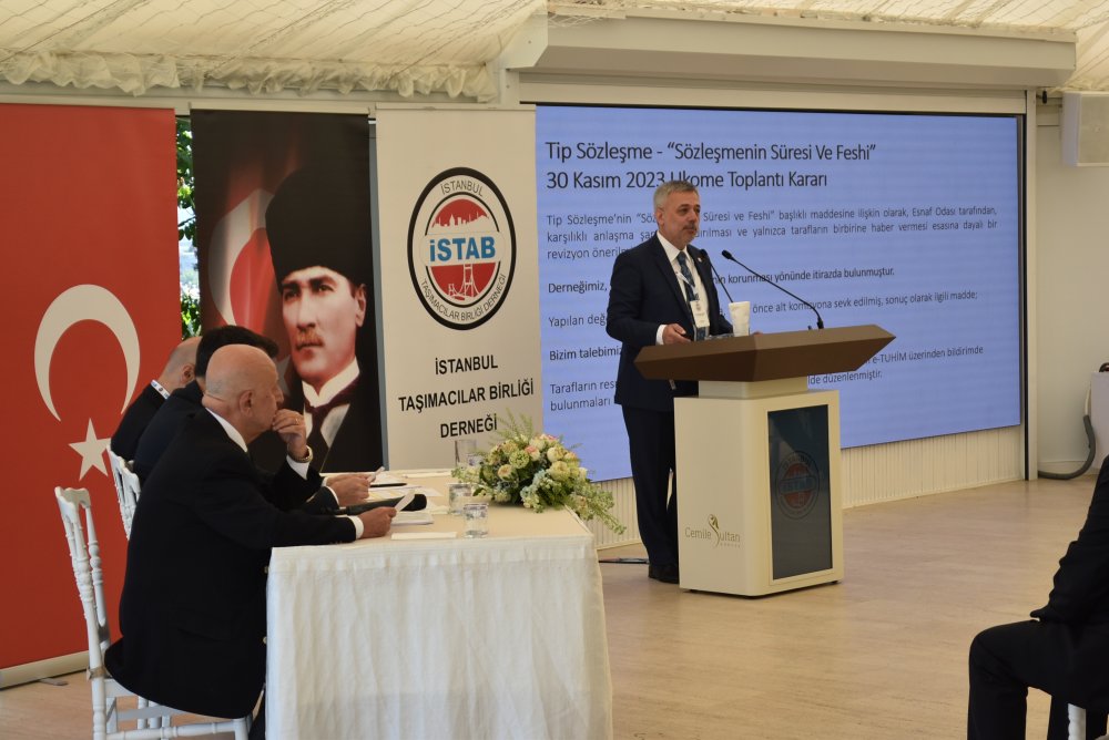 Genel kurulda sektörün duayen isimleri arasında yer alan ve İSTAB’ın kurucu başkanlarından Bayram Özata ve Ahmet Çınar kısa birer konuşma yaptılar.
