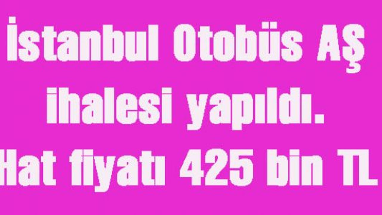 Yoğun katılımla başlayan İstanbul Otobüs AŞ hat ihalesinde Anadolu yakasında 149 hat için 312 kişi katıldı. 465 teklif verien hatlar için hat fiyatı 425 bin lira oldu. Katılımcılardan 387 bin lira teklif verenler, hat parasını 425 bin liraya tamamladıklarında hat sahiplik hakkı elde edecekler.