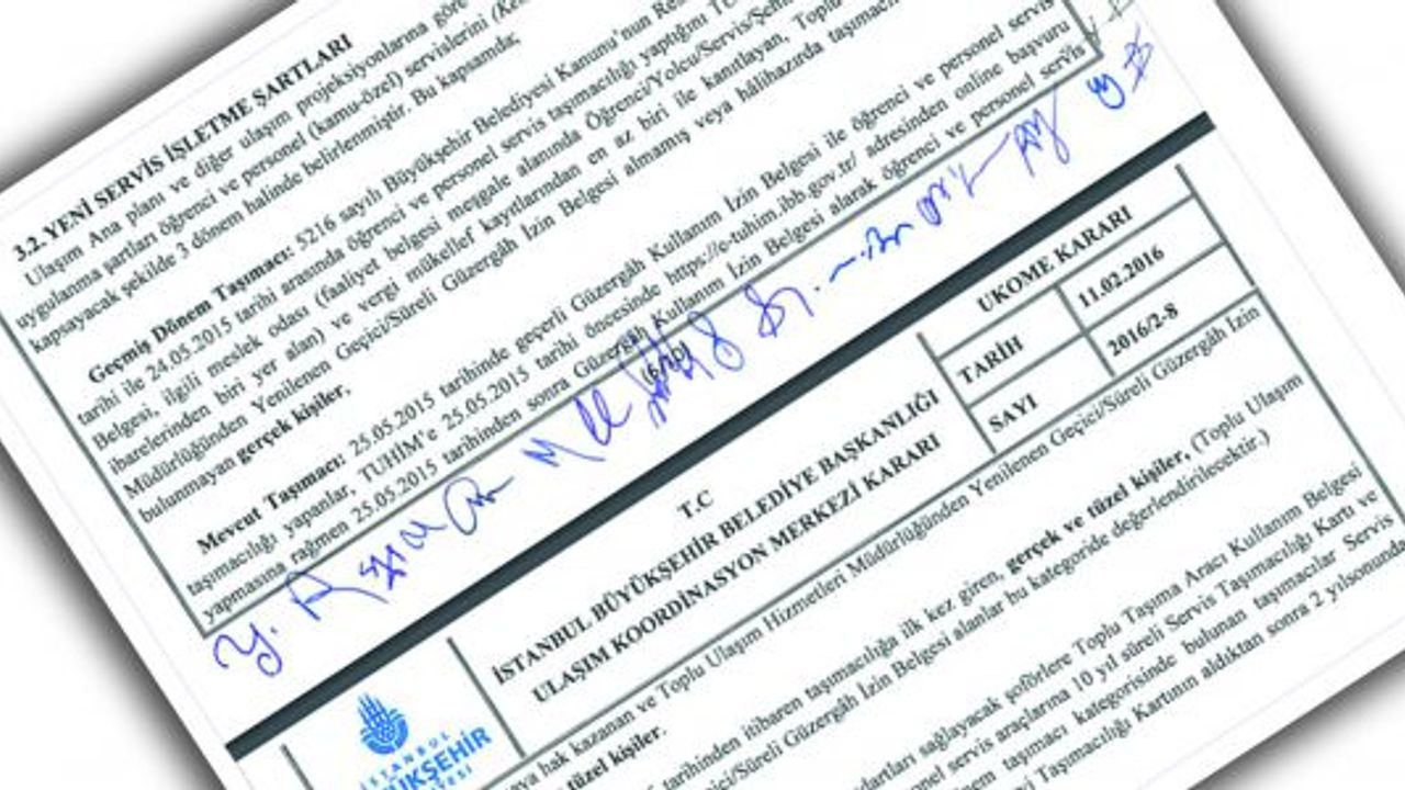 İstanbul Büyükşehir Belediye Başkanlıgı Ulaşım Koordinasyon Merkezi (UKOME) "Yeni Servis İşletme Şartları” Kararı.