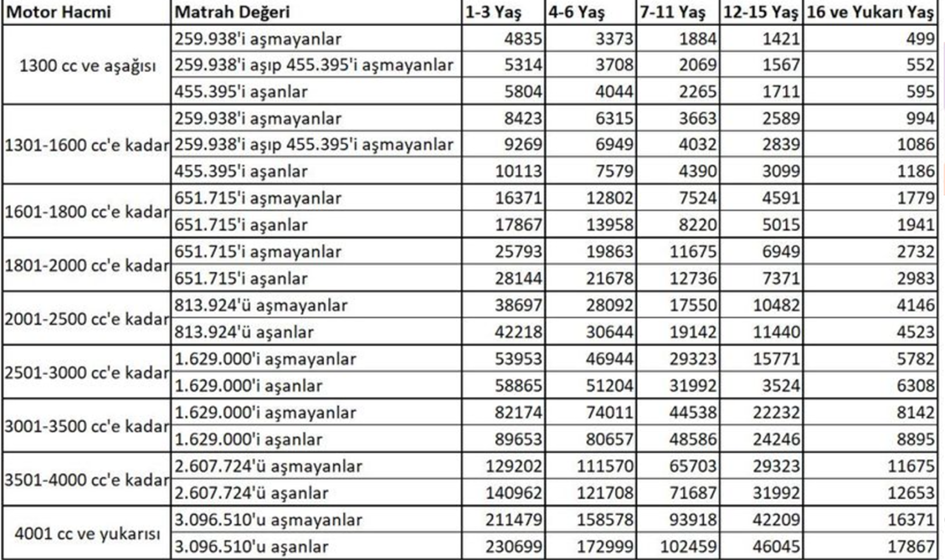 Her yıl araç sahiplerinden alınan Motorlu Taşıtlar Vergisi (MTV) Yeniden Değerleme Oranı'nda artırılıyor. Motor silindir hacmi 1300 ve altı olan yeni araçlarda en düşük MTV 3.359 TL’den 4.835 TL’ye yükselecek. En yaygın kullanılan silindir hacmi 1301 – 1600 arası yeni otomobillerde en düşük MTV de 5.851 TL’den 8.421 TL’ye çıkacak. Otomobillerde uygulanan muayene ücreti 1.821 TL’den 2.621 TL’ye yükselecek.
