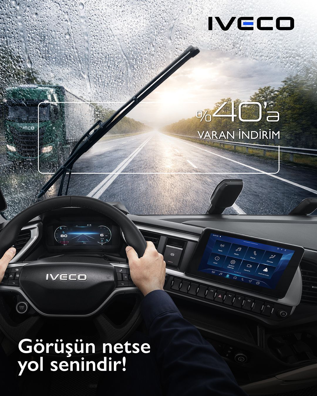 Görüşün Netse Yol Senindir: Silecek Kampanyası 30 Nisan 2026 tarihine kadar geçerli olan bu kampanya, IVECO orijinal silecek süpürgelerinde %40 indirim sunmaktadır. Kampanya, tüm hava koşullarında daha net ve güvenli bir sürüş deneyimi sağlamayı amaçlamaktadır.