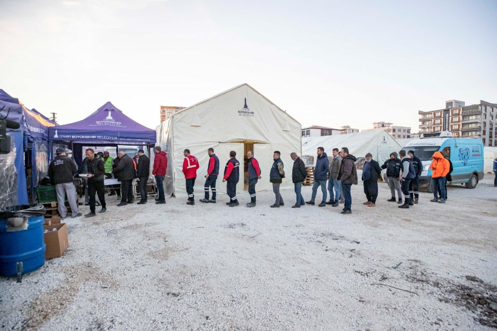 İzmir Büyükşehir Belediyesi Egeşehir Yapı Planlama A.Ş. Genel Müdürü ve Adıyaman Afet Koordinasyon Birimi Koordinatörü Ekrem Tükenmez, “Depremden sonra gördüğümüz temel bir şey var; paranın harcanabileceği hiçbir nokta yok. Paranın geçmediği bir dönemdeyiz buralarda. Bu nedenle insanlar paraları olsa da hiçbir şey alamayacak durumdalar. Dolayısıyla bu insanlarımızın ihtiyaçlarının giderilmesi bizim önceliğimiz. Bunlardan en önemlileri gıda ve barınmadır. Biz bir yandan barınma sorununu çözmek için çalışırken bir yandan da yemeğin sürekliliğini sağlamaya çalışıyoruz. Elimizdeki 7 mobil araçla, aşevimizden aldığımız sıcak yemeği köylerde dağıtıyoruz. Yemeğin yanı sıra gıda ve hijyen paketi ulaştırıyoruz” diye konuştu.“Eksik bırakmadan bütün köylere ulaşacağız” Ekrem Tükenmez, “Adıyaman’ın merkez köylerinin tamamına ulaşmış durumdayız. Ama ihtiyaçlar artıyor. Yardımlarımızı artırarak ulaştırmaya devam edeceğiz. Biz Adıyaman’ın merkezindeki köylere ulaşırken diğer çevre ilçelerdeki ulaşılamayan köylere de yardımlarımızın gitmesi için çalışıyoruz” ifadelerini kullandı.