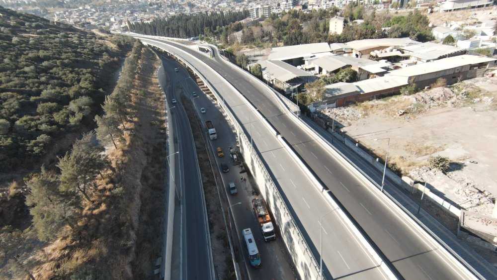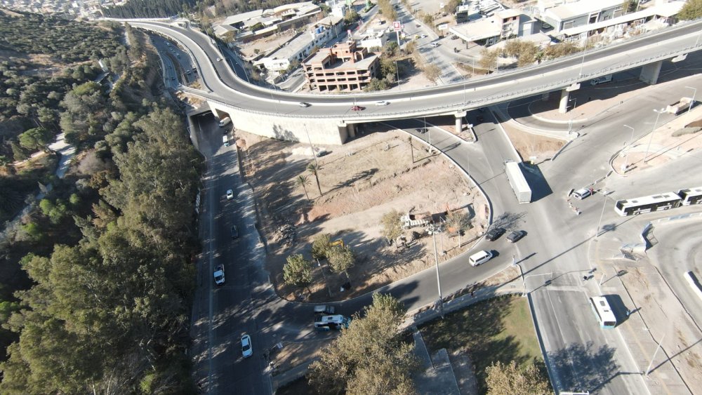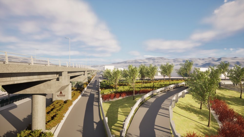 Yapımı süren Buca Onat Tüneli Projesi kapsamında tamamlanarak trafiğe açılan bağlantı yolu viyadüklerin altında kalan, İzmir Şehirlerarası Otobüs Terminali’nin giriş kapısının da bulunduğu alanda peyzaj ve çevre düzenlemesi çalışmaları devam ediyor.
