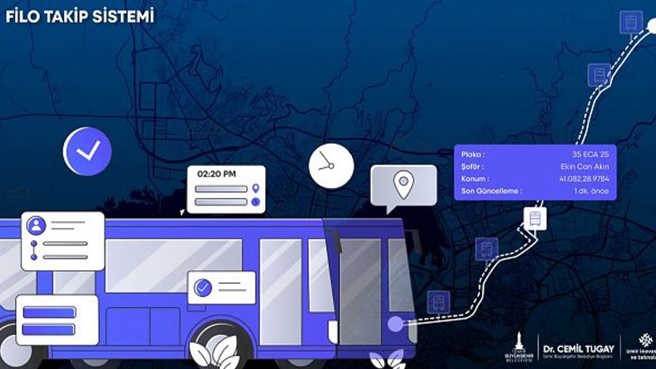 İzmir Büyükşehir Belediyesi İzmir İnovasyon ve Teknoloji AŞ Web ve Mobil Teknolojiler Şube Müdürlüğü, tüm araç filosu süreçlerinin yönetilmesini ve kayıt altına alınmasını sağlamak amacıyla İzmir ulaşımı için Filo Takip ve Yönetim Sistemi’ni hayata geçirecek. Sistem yazılımı, yapay zeka desteği ile çalışarak araç takibi, şoför ve merkezin irtibatı, bekleme süresi hesaplama ve optimizasyonu, olası rota dışına çıkma durumu tespiti, yakıt tüketimi, araçların parça bakım bilgisi, trafik yoğunluğunu hesaplama gibi pek çok teknik özelliğe sahip olacak. Filo Takip ve Yönetim Sistemi, bir aracın hem sağlığını hem güvenliğini hem de seyir halindeki hareketlerini izleyecek ve merkeze rapor edecek. Ayrıca Yapay Zeka Müdürlüğü’nün hazırlayacağı Sefer Optimizasyonu Çalışması yazılımına da veri sağlamış olacak.