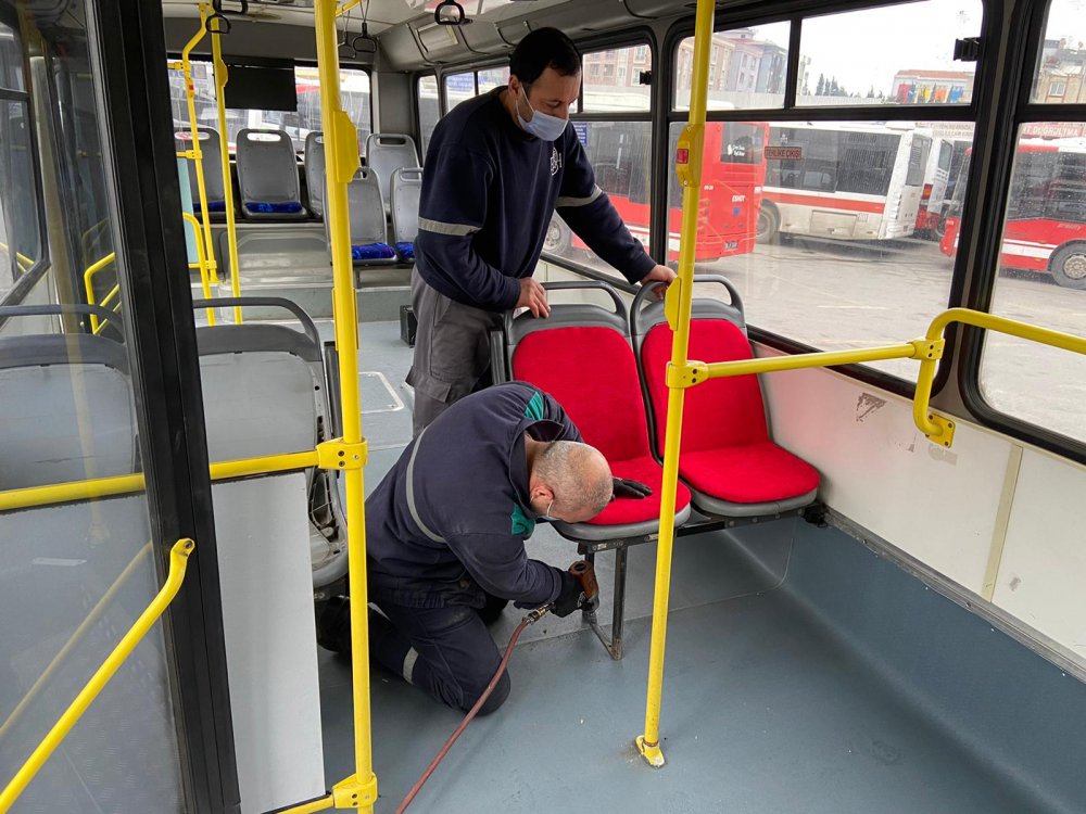 ESHOT filosunun yıpranan araçları, atölyelerde bakıma alınıyor. Döşemelerden zemine, elektrik tesisatından klimalara ve boyaya kadar tüm aksamlar baştan aşağı yenileniyor. İhtiyaç duyulan araçlara yeni motor dahi yapılıyor. Çalışmalar kapsamında bugüne dek 350 otobüs, fabrika çıkışı gibi yenilendi. Belirlenen plan dahilinde yenilenmeyen araç kalmayacak.