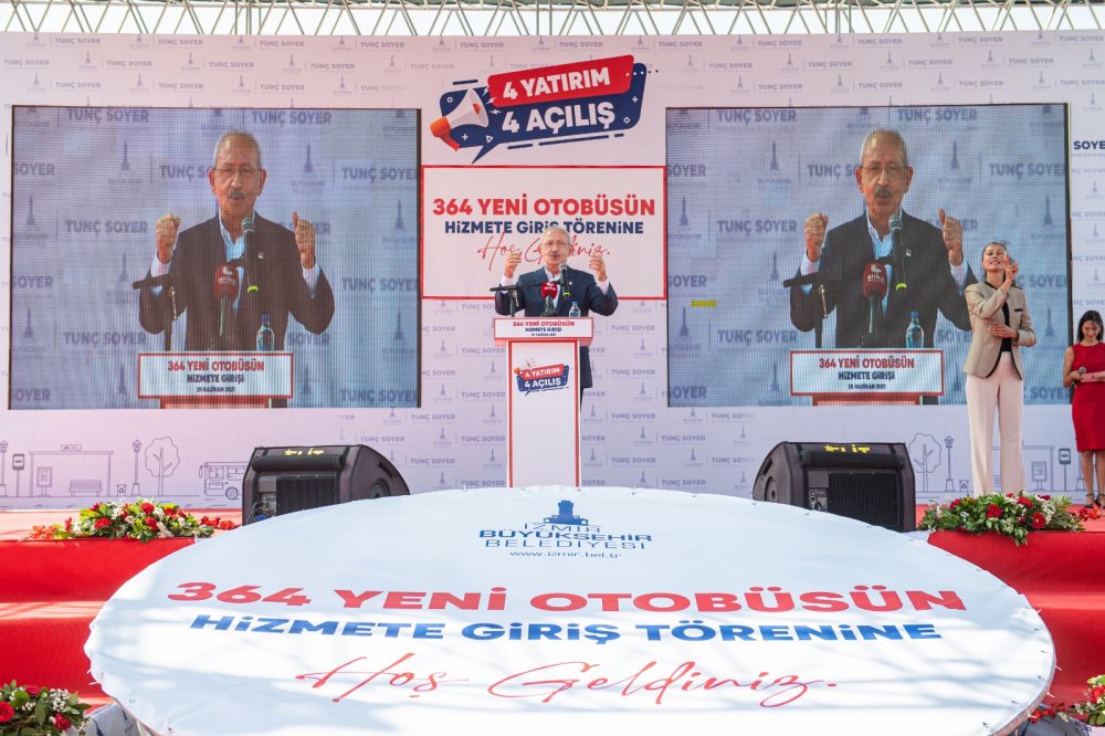 Ülke genelinde tek seferde en büyük otobüs alımına imza atan İzmir Büyükşehir Belediyesi, 570 milyon liralık yatırımla satın aldığı 160'ı körüklü, 204'ü solo olmak üzere toplam 364 Otokar otobüsü, CHP Lideri Kemal Kılıçdaroğlu’nun katıldığı törenle hizmete aldı.
