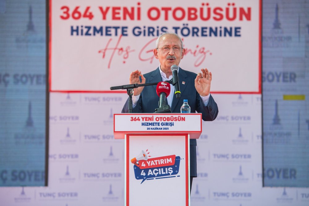 Törende konuşan CHP Lideri Kemal Kılıçdaroğlu “İzmir’in içinde çiçekler açıyor. Bunları yapan da İzmir Büyükşehir Belediye Başkanı Tunç Soyer. İzmirlilere hizmet verdiği için ona teşekkür ediyorum. Bugün dört ayrı açılış yaptık. 1 milyar liranın üzerinde toplam yatırım bedeli var. Yani 1 milyar liranın üzerinde yatırımı Başkan Tunç Soyer İzmirlilerin hizmetini sundu. Son derece mutluyum. Başkan tarımdan ulaşıma kadar her alanda çaba harcıyor. 364 otobüsü bir seferde alıp İzmirlilerin hizmetine sunmak, alım için yapılan anlaşmayla sağlanan 242 milyon liralık tasarrufu da İzmirliler ile paylaşmak yurttaşa hesap vermek demektir. Belediye başkanlarımızın en temel özelliği hesap vermektir. Harcadığı her kuruş onların parası değil, sizin paranızdır” dedi.