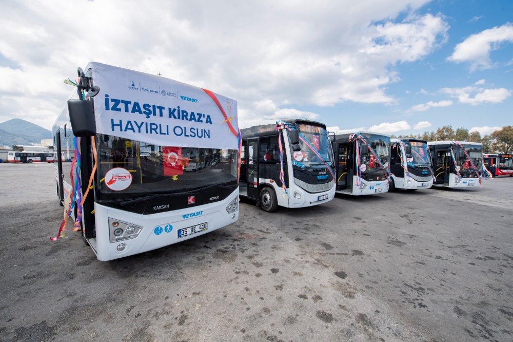 Kiraz’da hizmete girecek İZTAŞIT otobüsleri, 26’sı oturan olmak üzere toplam 61 yolcu kapasiteli. Konforlu, engelsiz, klimalı, kameralı, alçak tabanlı ve Euro 6 emisyon standartlarına uygun araçlar, ESHOT Filo Takip Sistemi’ne de uyumlu.