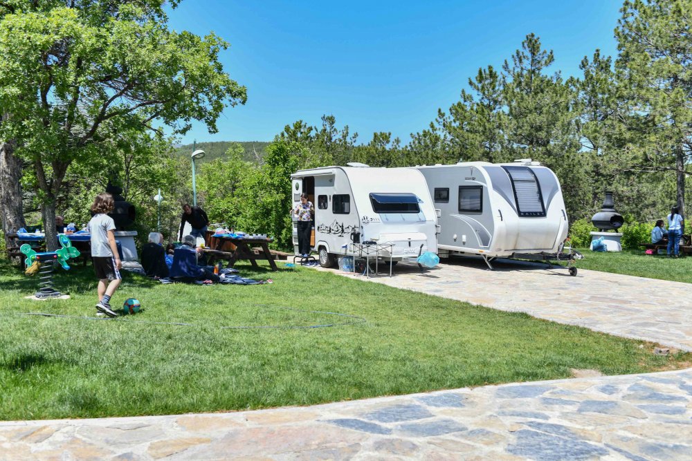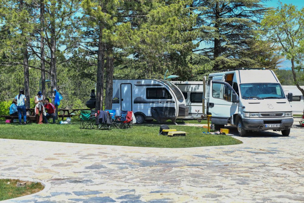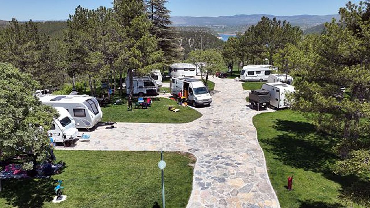 Kurtboğazı Barajı’nda yaklaşık 6 bin 500 metrekarelik alana kurulan karavan parkı kampseverlerin tüm temel ihtiyaçlarını karşılıyor.