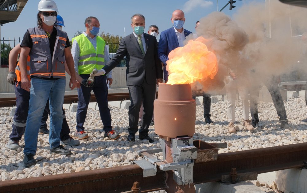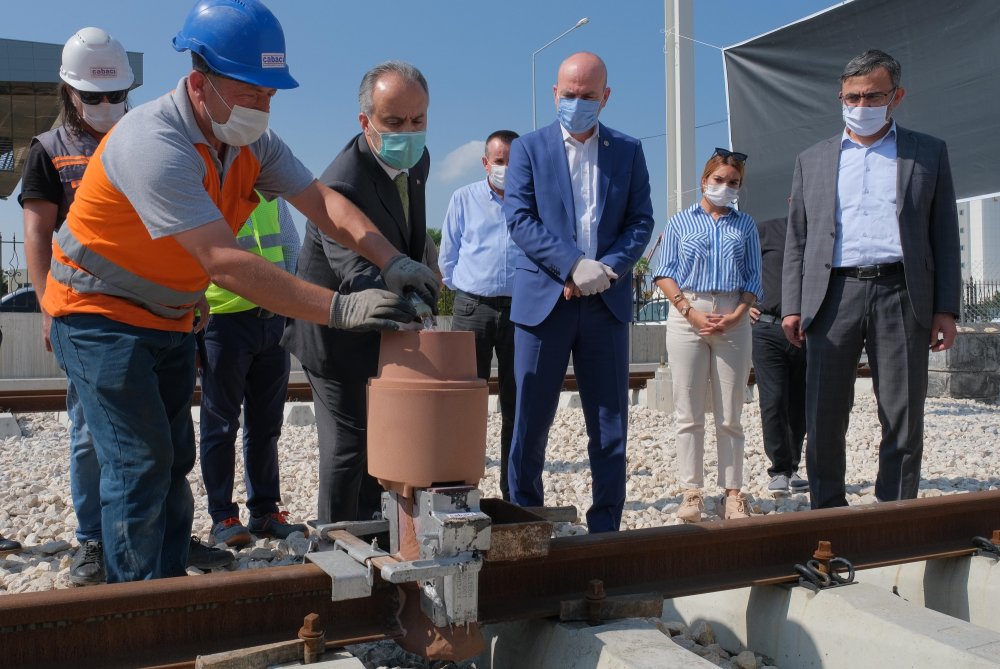 Rayların yapılmayan kaynak imalatlarının tamamlanması için devam eden çalışmaları dikkatle inceleyen Başkan Aktaş, ilk kaynağın ateşlemesini de bizzat kendisi yaptı. “Kent Meydanı - Terminal Tramvay Hattı (T2 hattı) inşaat tamamlama işleri” ihalesi kapsamında; hat üst yapısındaki eksik ray kaynakları, ikinci tabaka balast, S49 raylarının gerdirilmesi, buraj yapılması, makas montajları, makas kaynakları, eksik betona tespitli hatların yapımı ve balastlı hat eksik prefabrik kablo kanalı montajı yapılacak. 9 adet üstgeçit istasyonun solid polikarbonat, membran kaplama çatı örtüsü, asansör ve üst geçit prekast cephe kaplama, teknik hacim dış cephe klinker kaplama, üst geçit kompozit panel kaplama, asansör dış cephe kompozit panel ve cam kaplama, 2 Nolu istasyon çelik imalatı ve montajı, kauçuk kaplama, paslanmaz korkuluk, kompozit kaplama imalatları yapılacak. Bunun yanı sıra trafo ve istasyonlarda teknik hacimlerde klinker kaplama ve karo kaplamaları imalatları yapılacak. Hat yolu üzerinde eksik katener direkleri montajı, katener temel imalatları ve hat yolu eksik drenaj çıkışlarıyla birlikte otobüs terminali drenaj hatlarının döşenmesi gerçekleştirilecek.