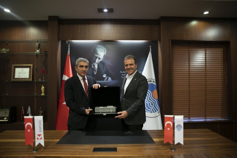 KARSAN Otomotiv Sanayi ve Ticaret A. Ş. CEO’su Okan Baş da imza töreninde yaptığı açıklamada, hem filoyu gençleştirmesi hem de en yeni teknolojilere sahip olması dolayısıyla Mersin’e çok iyi ürünler kazandırdıklarını belirterek, “Biz hem gururlanıyoruz hem de bizim için önemli bir sorumluluk bu. Çünkü bu kadar büyük bir filo son yıllarda Mersin’den başladı. Önemli bir referans bizim için. Buradaki sizin memnuniyetinizle Türkiye’nin diğer şehirlerine de ulaşmayı hedefliyoruz. Bu anlamda araçlarımıza çok da iyi bakacağız. Hep beraber Mersinlilere layık olmaya çalışacağız. Geçen seneden bugüne tüm Limonlarınızı KARSAN olarak tercih ettiğiniz için teşekkür etmek istiyorum. Herkese, Mersinlilere hayırlı olsun demek istiyorum” diye konuştu.