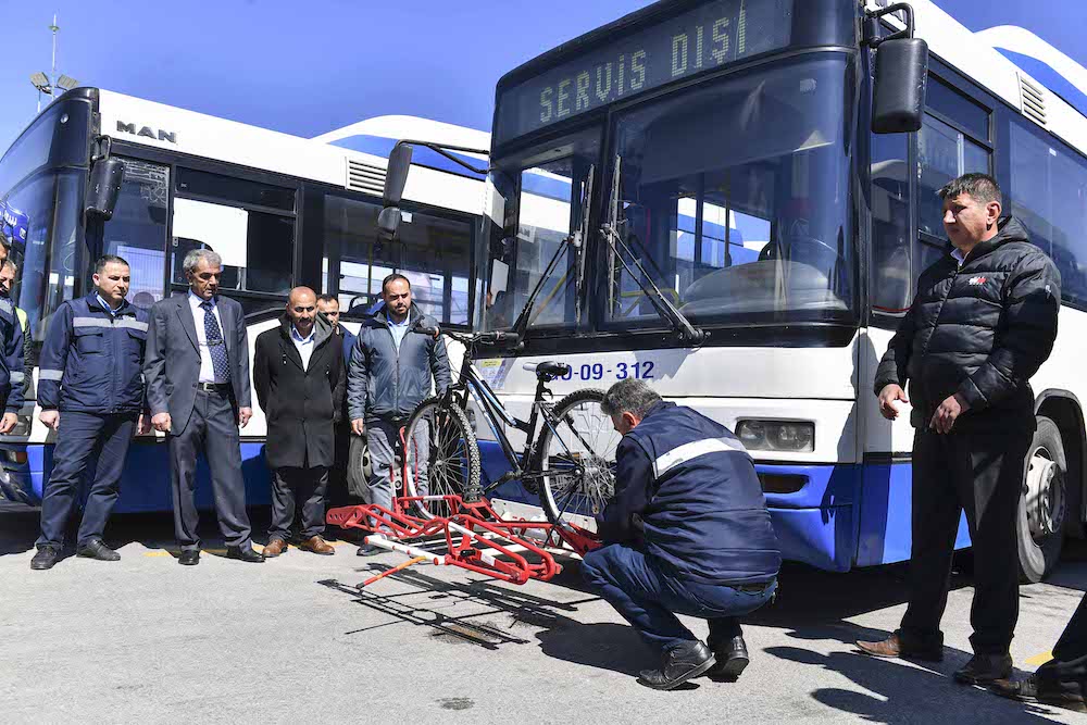 Başkentin birçok noktasını mavi bisiklet yollarıyla buluşturan Ankara Büyükşehir Belediyesi şimdi de bisiklet ile seyahat etmek isteyen vatandaşlara toplu ulaşımda büyük kolaylık sağlayacak bisiklet taşıma aparatlarını solo MAN CNG marka EGO otobüslerine monte etti. Çift bisiklet taşıma kapasitesine sahip aparatlar, EGO Otobüs Bölge Müdürlüklerinin depolama merkezlerinde otobüslerin şasilerine tek tek takıldı. Smart Ankara kapsamında bir projenin daha tamamlanarak hayata geçirildiğini belirten EGO Genel Müdür Yardımcısı Zafer Tekbudak, yürütülen çalışmalar hakkında şu bilgileri verdi: