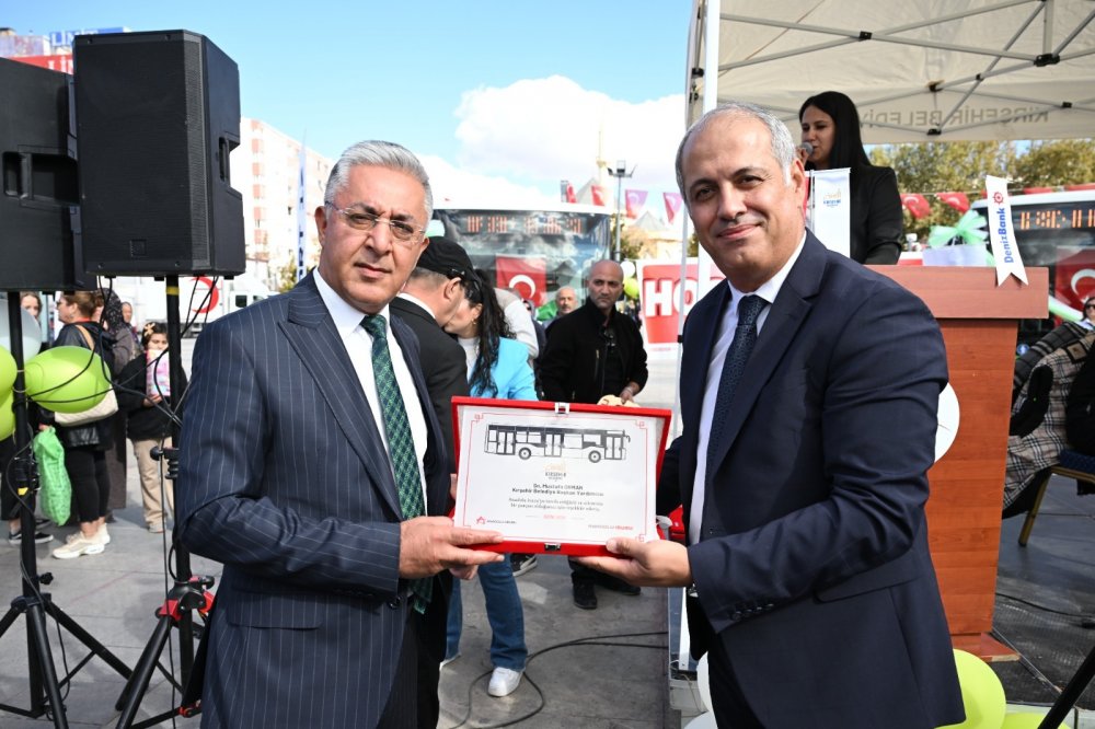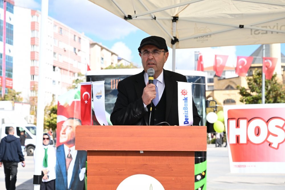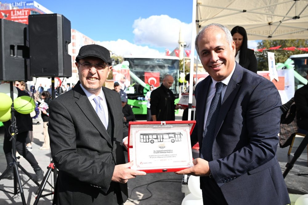 Hep birlikte bugün otobüslerimizi Kırşehir halkının hizmetine sunacağız. Özellikle renk tasarımına-tercihine kadar ortak akılla karar aldık; kamuoyundan sosyal medyadan veriler topladık. Sonuç olarak otobüslerin rengine de halkımız karar verdi. Bundan sonra da bu renklerle devam edeceğiz. Kırşehir halkının daha konforlu toplu taşınmasına hep birlikte katkı sunacağız