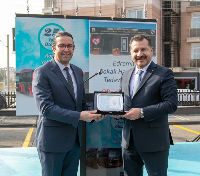 Otokar Ticari Araçlar Kamu Satışları Direktörü Mahir Özşeker, Balıkesir Büyükşehir Belediye Başkanı Yücel Yılmaz