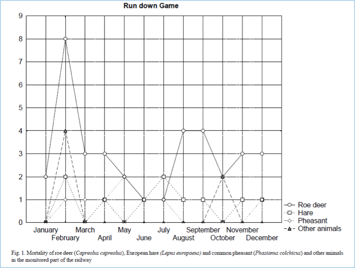 Bu araştırma ile bahsi edilen çalışmaların kıyaslanmasıyla, Çek Cumhuriyeti’nde lineer yapılarda demiryolu hattından en çok etkilenen türün karaca olduğu ve bunu tavşanın takip ettiği sonucuna varılabilir. Yabani hayvan türleri için, ölüm trafik kazalarının en görünür etkisidir. Her yıl milyonlarca hayvan kara ulaştırmasından kaynaklı ölmekte ya da yaralanmaktadır. Son otuz yıldır hayvanlara en yükü kaybı verdiren insan aktivitesinin ulaştırma olduğu ve avlanmayı bu konuda geride bıraktığı düşünülmektedir.