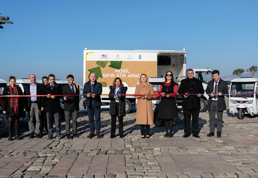 Konak Belediye Başkanı Nilüfer Çınarlı Mutlu, belediyenin filosuna yeni araçlar kazandırma sözünün bir kez daha arkasında durdu. Geçtiğimiz günlerde Devlet Malzeme Ofisi’nden (DMO) alınarak kontak çalıştıran çöp kamyonlarının ardından şimdi de “Kapsayıcı Sıfır Atık Yönetimi ile Sosyal Uyumun Güçlendirilmesi Projesi” kapsamında 1 adet Mobil Atık Toplama Kamyonu ve 10 adet elektrikli triportör hizmete kazandırıldı. Birleşmiş Milletler Kalkınma Programı (UNDP) Türkiye ve Çevre, Şehircilik ve İklim Değişikliği Bakanlığı iş birliğinde yürütülen proje çerçevesinde belediyeye hibe edilen araçlar, Alsancak Gündoğdu Meydanı’nda düzenlenen törenle teslim alındı. Törene Başkan Nilüfer Çınarlı Mutlu’yla birlikte Birleşmiş Milletler Kalkınma Programı (UNDP) Türkiye Mukim Temsilcisi Monica Merino, UNDP Türkiye Mukim Temsilci Yardımcısı Miodrag Dragisic, UNDP Türkiye Portföy Yöneticisi Cem Bayrak, UNDP Türkiye Bölge Koordinatörü Güvenç Küçüktok, UNDP Türkiye Proje Koordinatörü Didem Köseoğlu, Hayata Destek Derneği Proje Yöneticisi Müge Yamanyılmaz, Konak Belediyesi Meclis Üyeleri ve belediye bürokratları katıldı. Yeni mobil araçlar sayesinde Konak Belediyesi’nin geri dönüşüm atıklarını daha hızlı ve etkin şekilde toplamasını sağlayacak ve çevre korumada önemli bir adım atılmış olacak.
