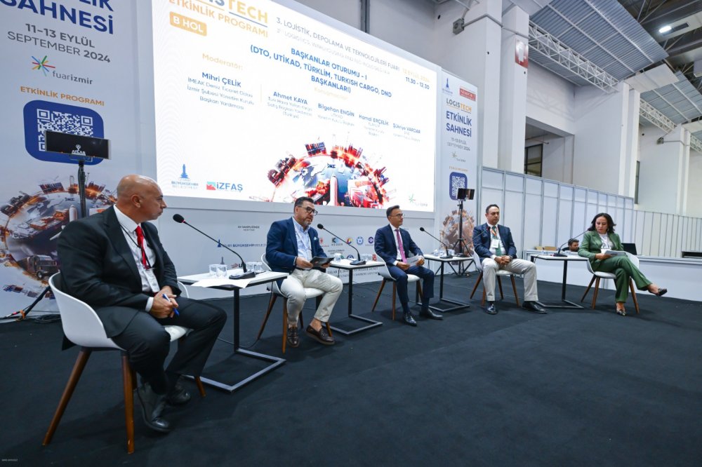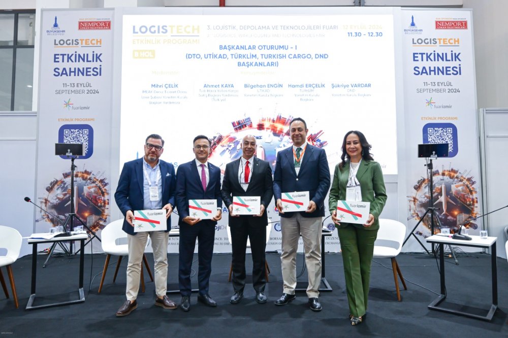İzmir Büyükşehir Belediyesi’nin ev sahipliğinde 11- 13 Eylül tarihleri arasında İZFAŞ tarafından bu yıl üçüncüsü düzenlenen LOGISTECH - Lojistik, Depolama ve Teknolojileri Fuarı kapsamında İMEAK Deniz Ticaret Odası İzmir Şubesi Yönetim Kurulu Başkan Yardımcısı Mihri Çelik başkanlığında Başkanlar Oturumu yapıldı. Konuşmacılar, başta Kalkınma Yolu olmak üzere ülkemizi küresel taşımacılık koridorlarına bağlayacak projelerin önemine dikkat çekerken dijital teknoloji ve yeşil dönüşüm ile coğrafi avantajın lojistik fırsata çevrilebileceğini dile getirdi. Oturumda, Türk Hava Yolları (THY) Kargo Satış Başkan Yardımcısı Ahmet Kaya, Uluslararası Taşımacılık ve Lojistik Hizmet Üretenleri Derneği (UTİKAD) Yönetim Kurulu Başkanı Bilgehan Engin, Türkiye Liman İşletmecileri Derneği (TÜRKLİM) Yönetim Kurulu Başkanı Hamdi Erçelik ve İzmir Deniz Nakliyecileri Derneği (DND) Yönetim Kurulu Başkanı Şükriye Vardar konuşmacı olarak yer aldı.