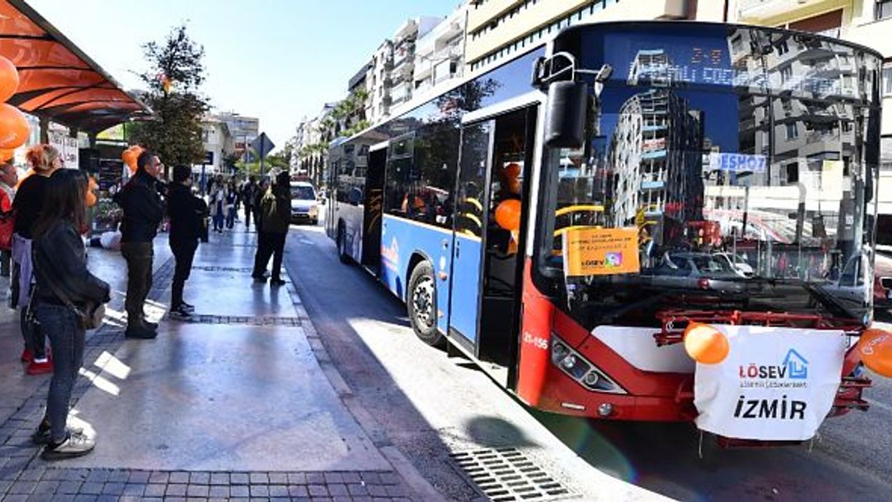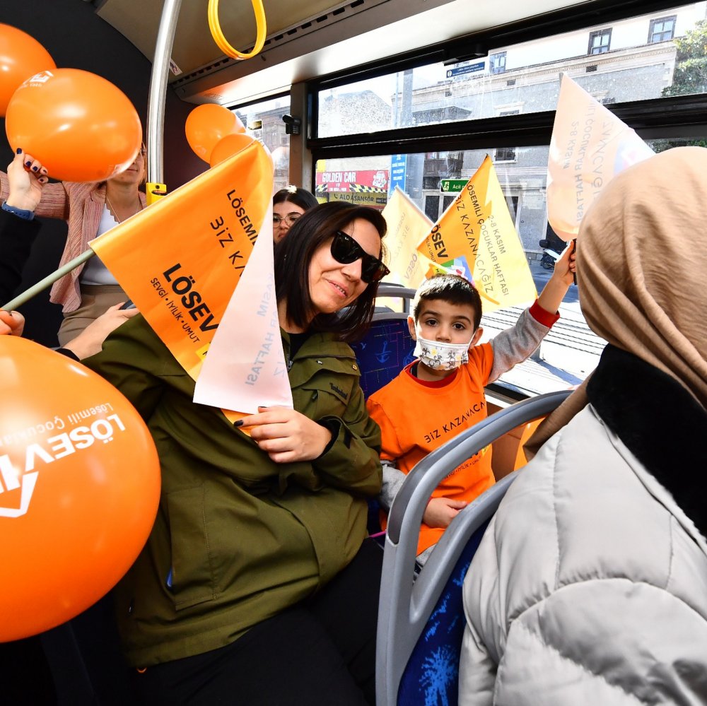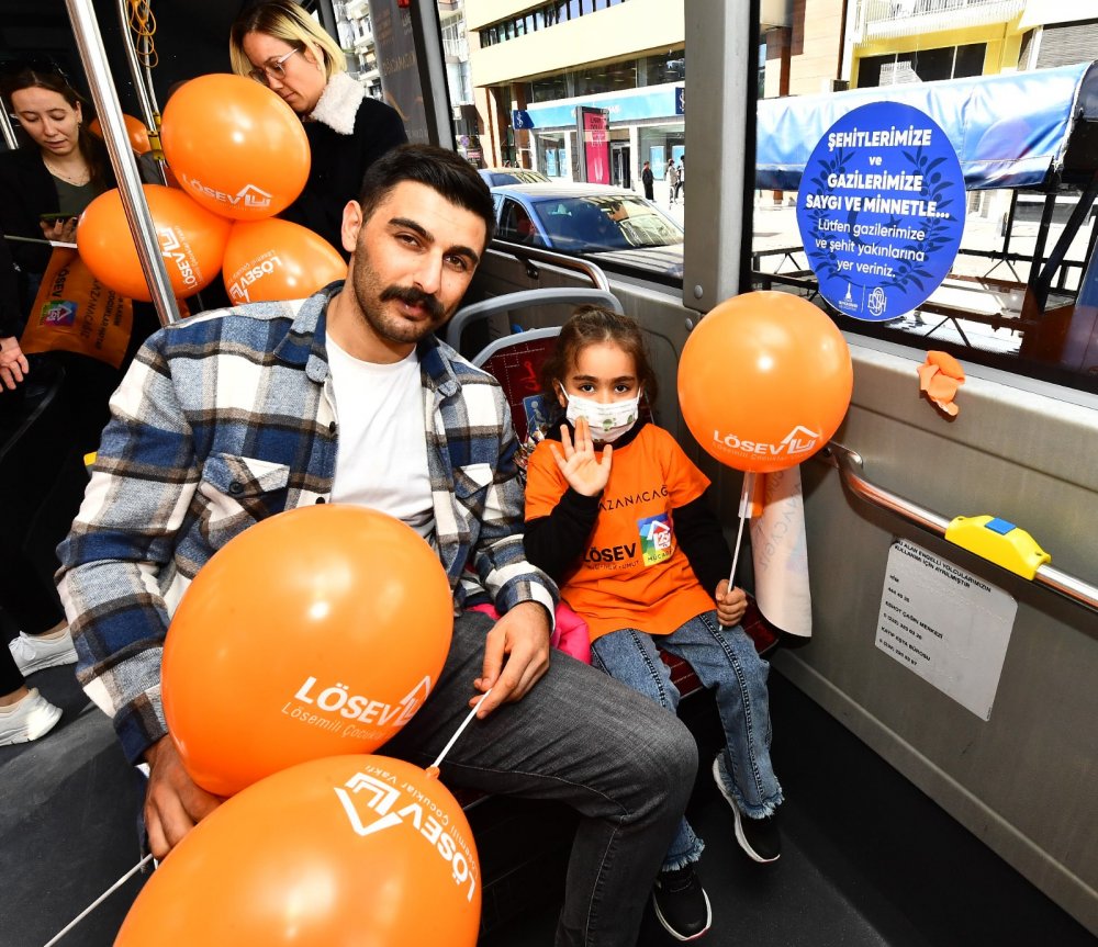 İzmir Büyükşehir Belediyesi ESHOT Genel Müdürlüğü, 2 – 8 Kasım Lösemili Çocuklar Haftası etkinliklerinde LÖSEV’e destek verdi. Lösemili Çocuklar Haftası’na özel olarak giydirilen ESHOT otobüsü, kadın şoförü ve turuncu balonlarıyla yolcularını Alsancak Kıbrıs Şehitleri Caddesi girişinde karşıladı.