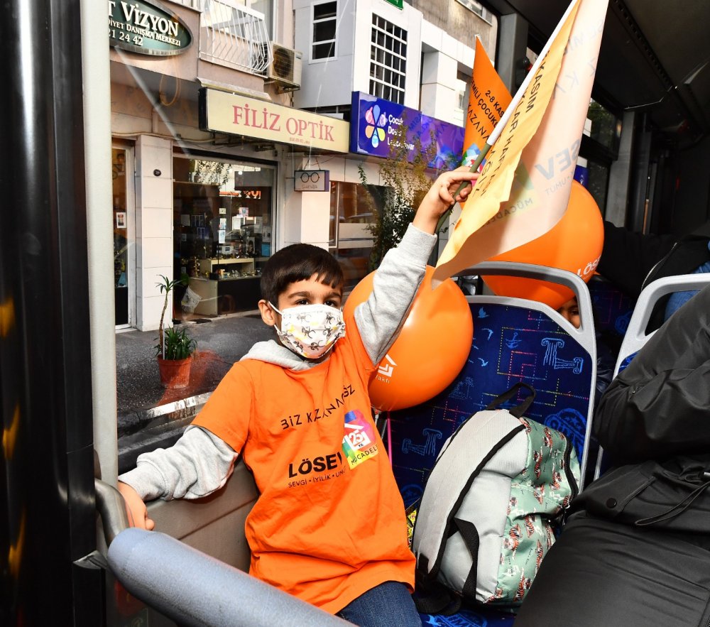 Lösemili çocuklar; aileleri ile otobüse binerek Alsancak’tan Konak’a, Konak’tan tekrar Alsancak’a tur attı. Otobüste gönüllüler tarafından çocukların sevdiği şarkılar seslendirildi. Şarkılara hep bir ağızdan eşlik eden çocuklar, 8 Kasım 1998’de hizmete başlayan LÖSEV’in 26’ncı kuruluş yıl dönümünü de kutladı.