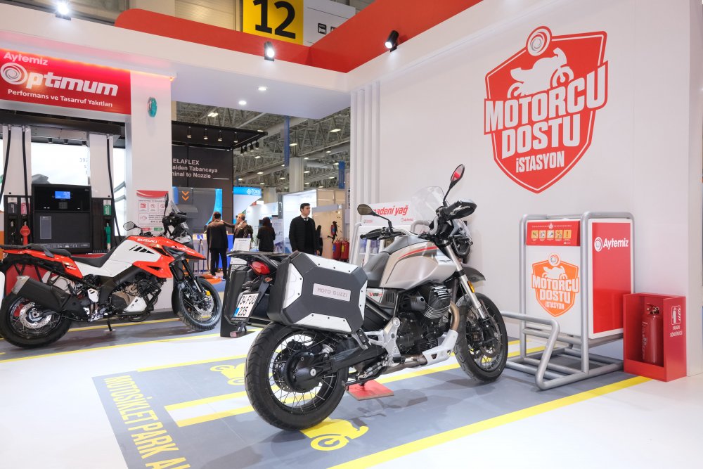 Dünyada bir ilk olan ve motosiklet sürücüleri tarafından büyük ilgi gören Aytemiz’in Motorcu Dostu İstasyon konsepti, fuar boyunca stantta sergilenen önemli alanlardan biri olarak öne çıkıyor. Şu anda Aytemiz’in 146 istasyonunda yer alan bu konsept; motosiklet sürücülerine özel park alanları, pompa adasında kaymaz zemin; kask, mont ve eldiven gibi eşyaları bırakacak kilitli dolaplar, motosiklete yakıt damlamasını ve çizilmeyi engelleyen yakıt koruyucu bez gibi üzerinde düşünülmüş detaylarla eşsiz bir istasyon deneyimi sunuyor.