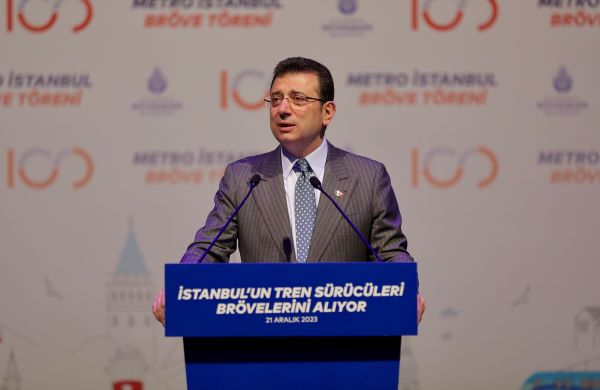 Kaptan’ın anonsuyla konuşma yapacağı platforma davet edilen ve alkışlar eşliğinde mikrofona gelen İmamoğlu, özetle şunları söyledi: “Kesinlikle gurur verici bir tablo. Burada bulunan yeni yol arkadaşlarımı, yeni görevlerinde, mesleklerinde başarılar dileklerimle ben alkışlıyorum. Güzel bir yolculuğunuz, güzel bir başarınız ve bu kariyer noktasında da farklı farklı mevkilerde sizi görebileceğimiz çok özenli bir iş hayatınız olması dileğiyle, aramıza hoş geldiniz, sefalar getirdiniz. Tren sürücüleri eğitimini tam 311 arkadaşımız bitirdi ve birazdan takdim edeceğiz. Ve birlikte onların sevincini ve gururunu paylaşacağız. Daha önce 2020 yılında da böyle bir tören düzenlemiş ve 88 tren sürücümüze takdim etmiştik. Dünyanın aynı anda en çok metro yapan şehriyiz. Bu tabii manipüle ediliyor. Farklı kavramlara taşınmaya gayret ediliyor. Ama ben diyorum ki: Allah aşkına tren orada, metrolar burada, metro şantiyelerimiz orada. Görmek isteyeni gezdirelim, görsünler.”