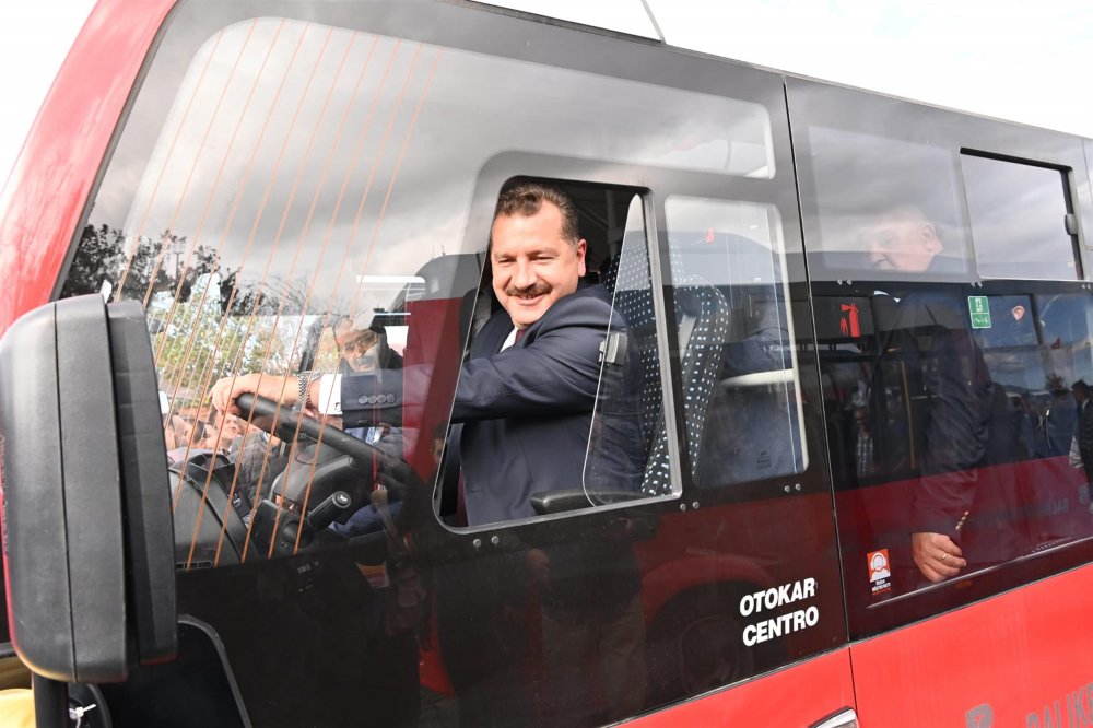 Başkan Yılmaz, kurdele kesiminin ardından direksiyona geçerek yeni otobüsler ilk seferi yaptı.