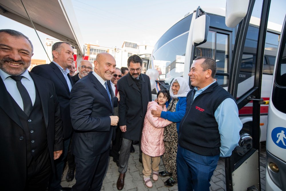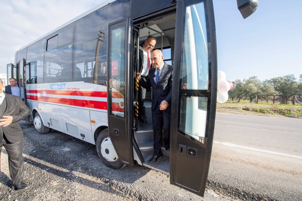 Konuşmaların ardından Başkan Soyer İZTAŞIT Bergama otobüsüne binerek ilk seyahate eşlik etti.