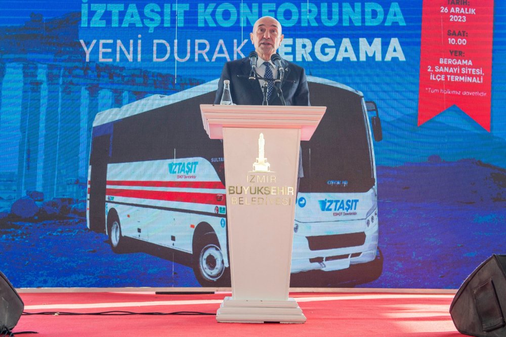 İzmir Büyükşehir Belediye Başkanı Tunç Soyer’in, kentin her yerinde güvenli, konforlu ve ekonomik toplu taşıma hizmeti sunmak için 2019 yılında Seferihisar’da başlattığı İZTAŞIT projesi, Kiraz, Menemen, Yeni Foça ve Ödemiş Kaymakçı’nın ardından Bergama’da da yola çıktı. İZTAŞIT Bergama’nın tanıtım toplantısı Bergama 2. Sanayi Sitesi’nde düzenlendi. Toplantıya İzmir Büyükşehir Belediye Başkanı Tunç Soyer’in yanı sıra Dikili Belediye Başkanı Adil Kırgöz, İzmir Büyükşehir Belediyesi Genel Sekreteri Barış Karcı, ESHOT Genel Müdürü Erhan Bey, S.S. Bergama Şehir İçi Karayolu Yolcu Taşıma Kooperatifi Başkanı Mesut Çalıştıroğlu, sivil toplum kuruluşu ve meslek odası başkanları, meclis üyeleri, muhtarlar ve çok sayıda Bergamalı katıldı.